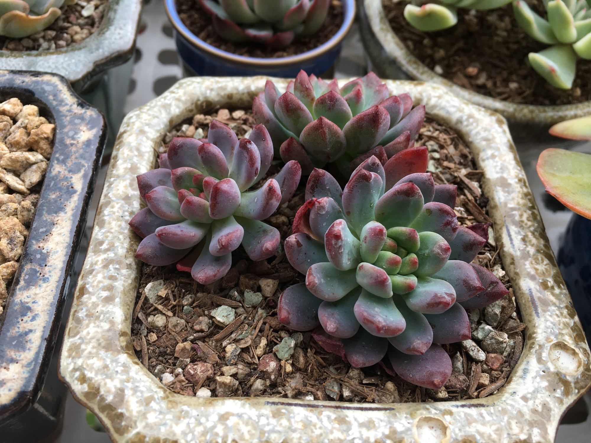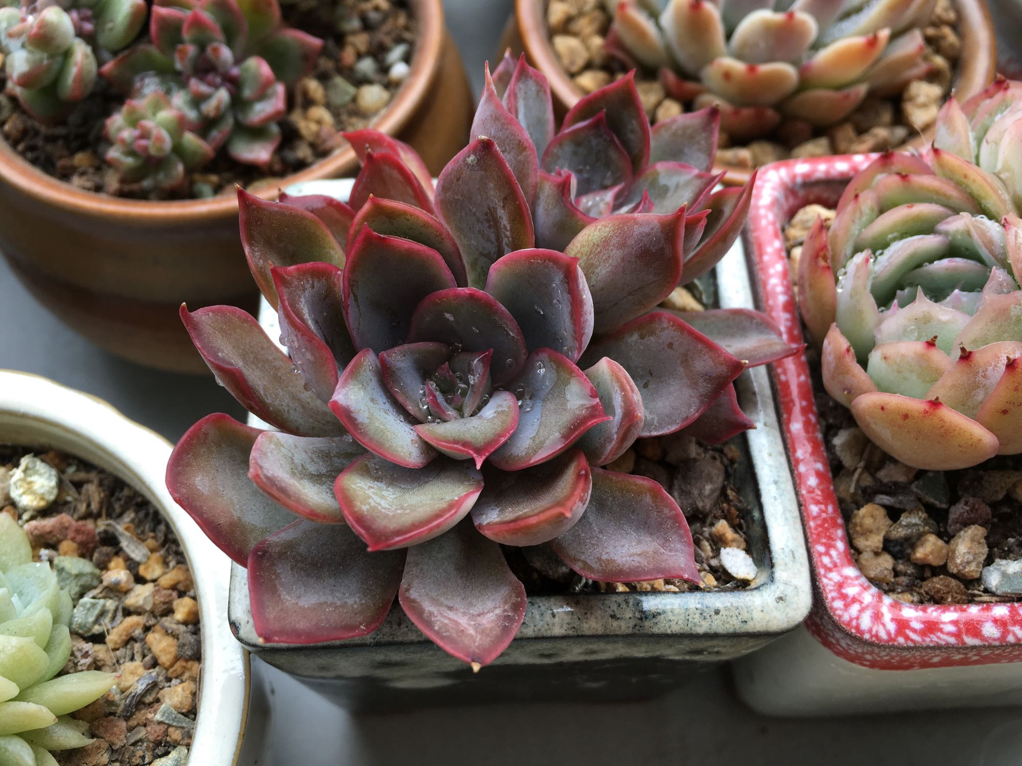 桃美人 约瑟琳 奥普 冰玉 桃美人长得好慢好慢 半年了都没消耗过叶子 瞧着叶芯稍微胖了点 希望能控成奶酪 哈哈 约瑟琳粉粉的超可爱 状态也容易上 这棵奥普是我养的状态最好的一棵 另外的几棵都没这个红 还有我最后的独苗苗冰玉 太喜欢这个品种 然而一直养死 对了冰玉这个品种真是养的不得要领 动不动就黑腐了