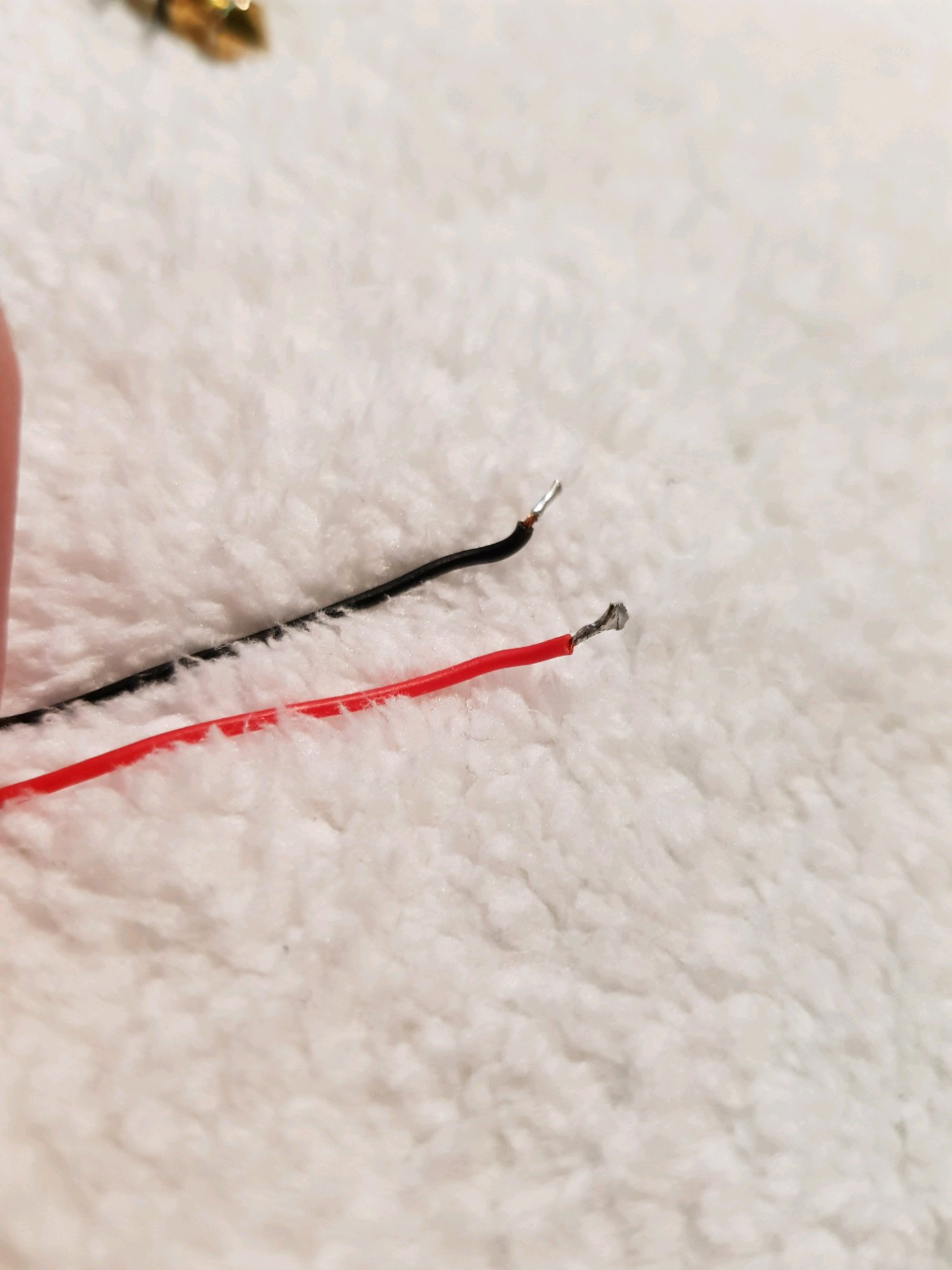 顺便贴一下原线,外面看起来挺粗的,实际上里面线芯很细,官方说是6N OFC + 不知名纯度的OFC,老实说现在随便一根耳机升级线都比这粗。内部也没有什么特殊结构,就是很普通的无氧铜线。