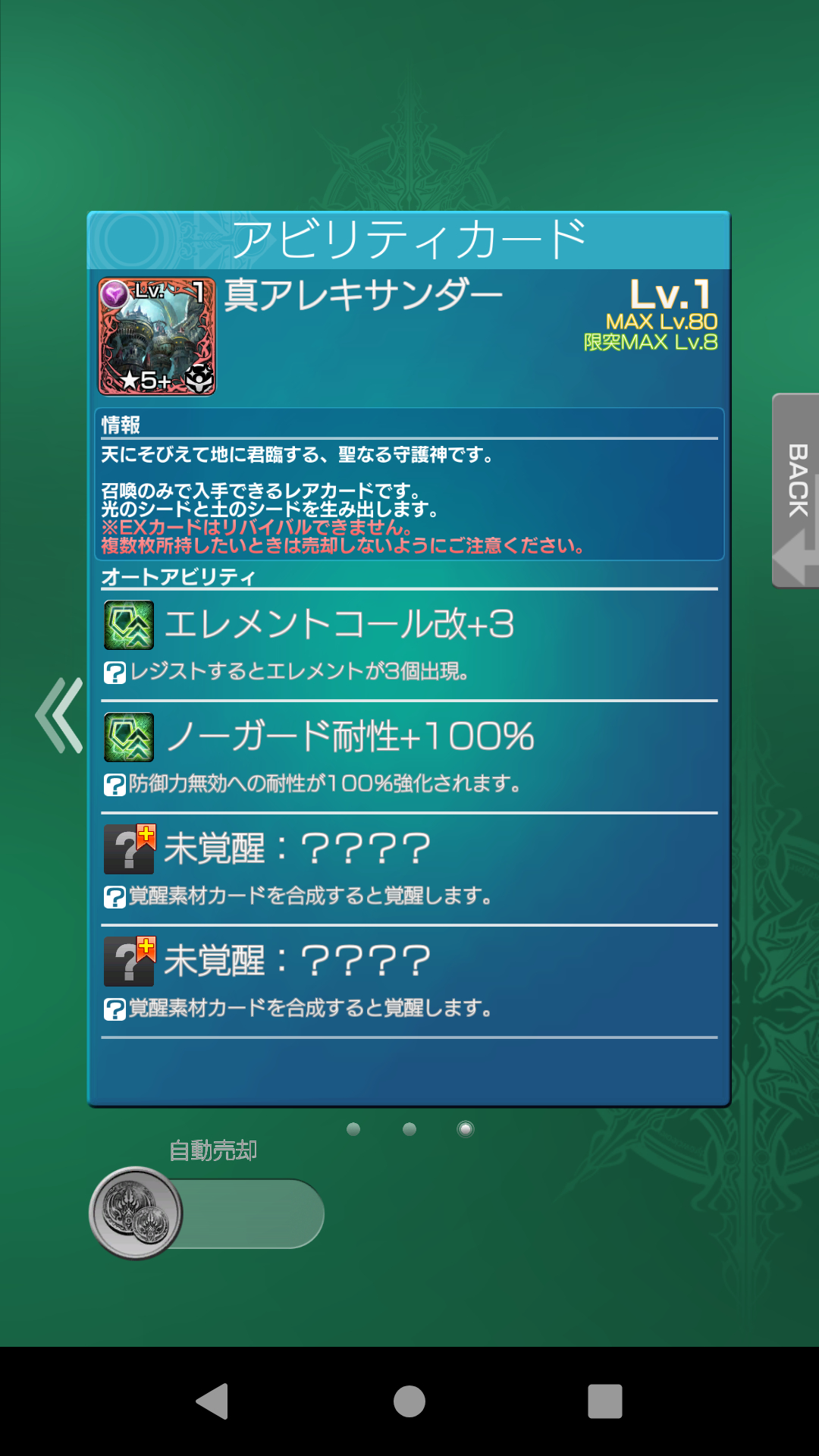 真·亚历山大的自动技能,跟主动技能很搭,防御无效化是抵消墙用的,自动技能带走100%耐性,这次的EX卡主动技能和自动技能的搭配给满分
