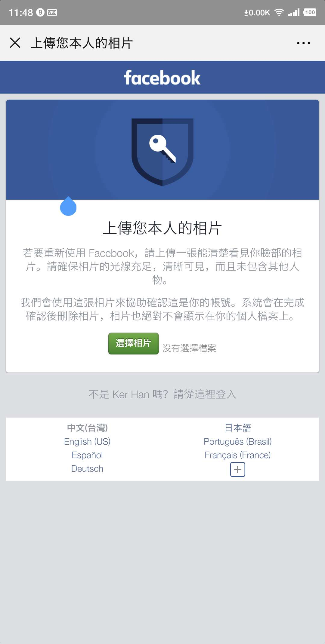 (国际服)我朋友安卓手机注册facebook要上传照片不论怎么传都通不过,然后又去注册line又碰到如图的情况,该怎么办呢