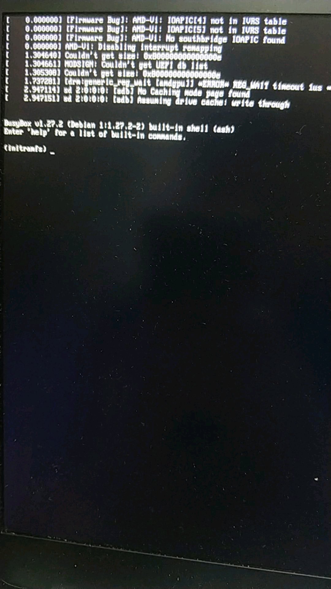 如果系统开机这样,输入exit看下报错,报错传上来艾特我