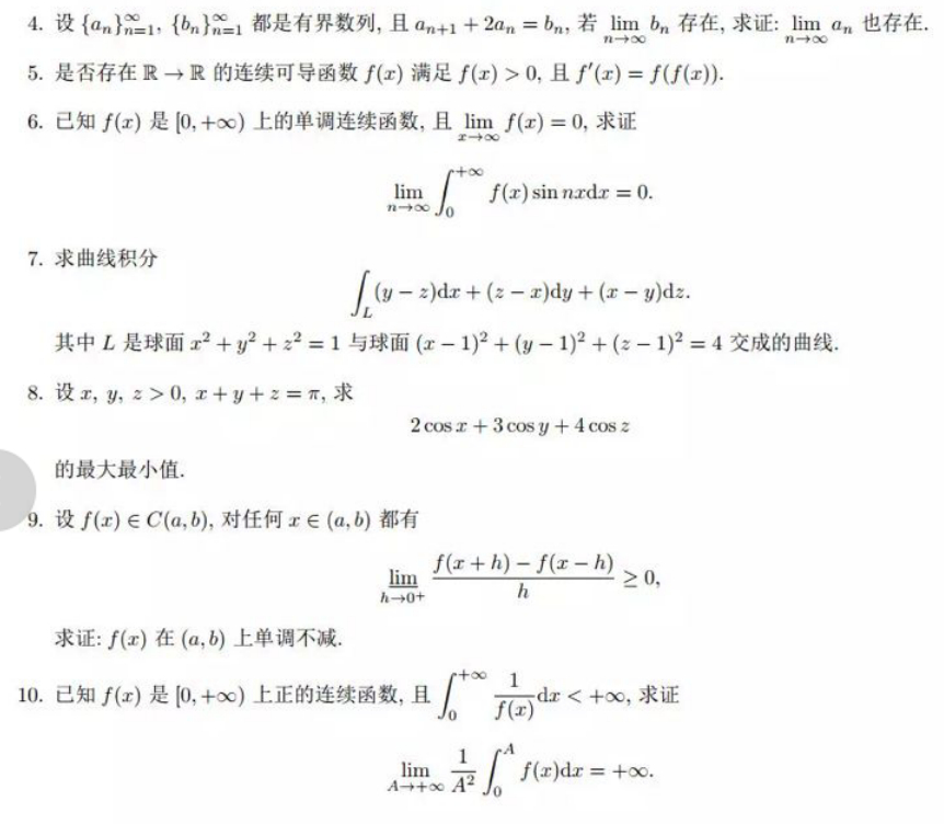 有错误欢迎指出,由于本次考试范围是数分数项级数止,高代线性变换止,解几大一上结束,所以和考试范围相差过大的题(如多元微积分)是不做的。