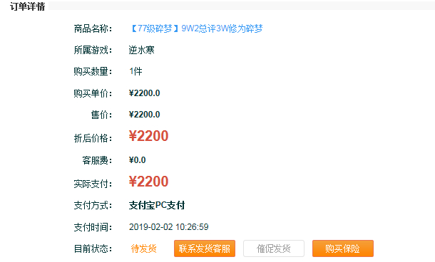 逆水寒网易账号。游戏内有过交流。现已付款都客服发货。没购买保险,游戏内曾接触过号主,感觉人品不错。