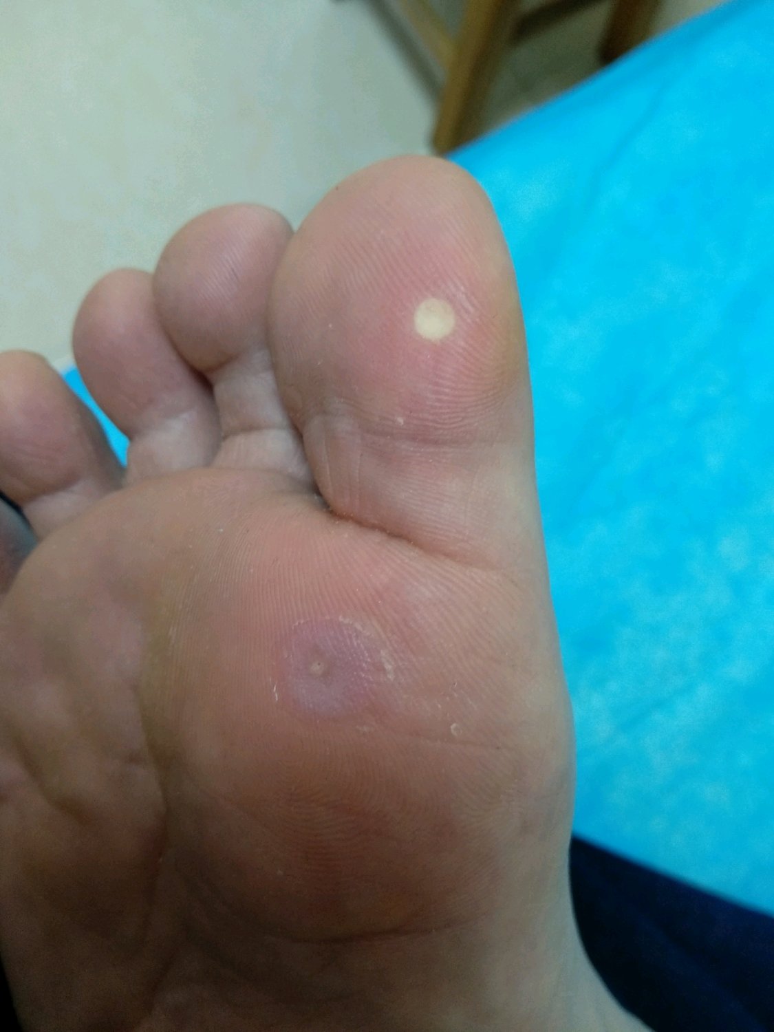 从昨天做了冷冻,就一直痛,还好可以用脚的一侧走路,冷冻的水泡位置不能碰,一碰就痛得很。疣比较多的慎重考虑怎么做