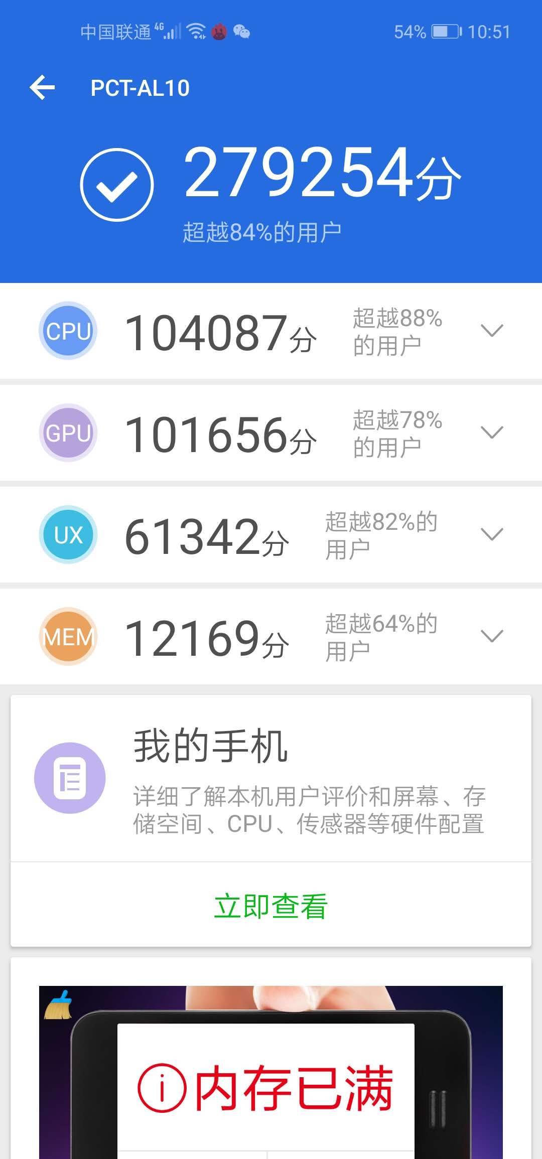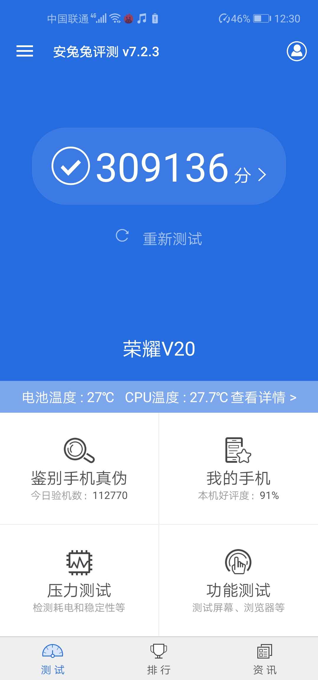 屏幕110的,跑分一次27万多,开启性能模式30多万。