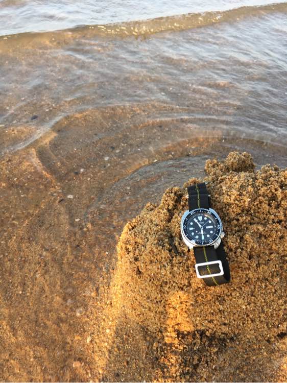 记得过后用水洗干净,海水对表壳有腐蚀性
