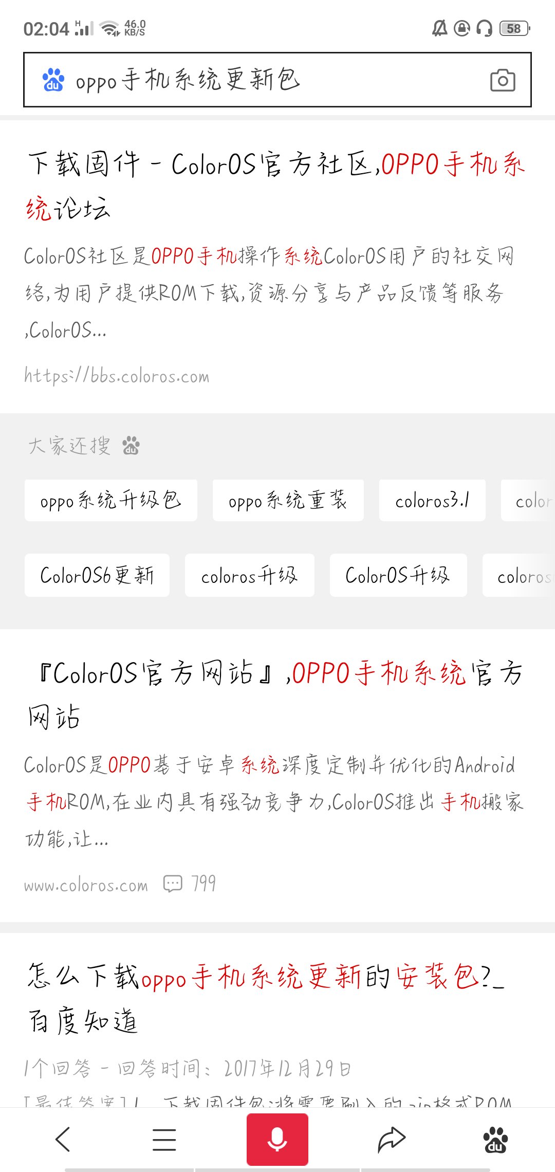 直接去浏览器搜索这个oppo手机系统更新包,大概找到以后就去下载,大约有2个G,然后记住下载到哪个文件夹了。下载完以后关机,关机以后同时按着电源键和音量“-”键,5s左右出现然后选择更新系统,找到下载好的安装包然后等着他自己更新就行了