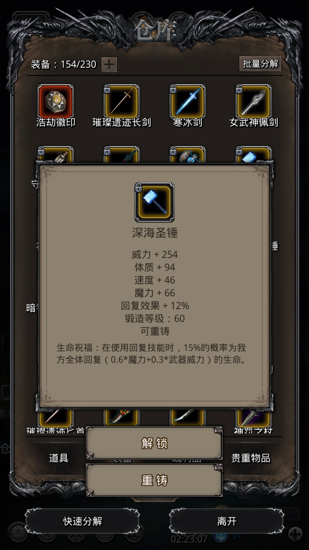 祭祀的速度太重要了,换了俩加速度的戒指后,感觉特别的稳,好像就重伤了两次。。