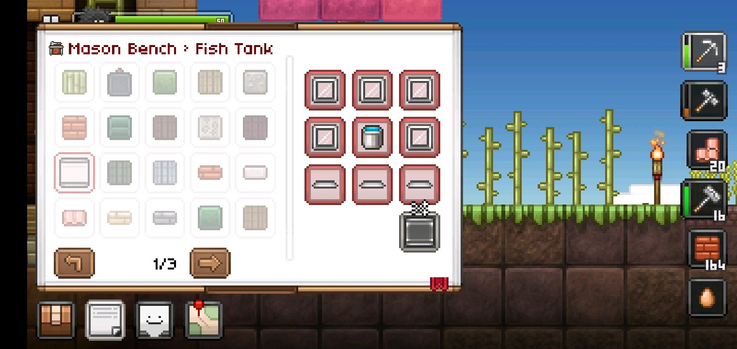 鱼缸再石匠工作台合成,桶和锅再铁砧合成,鱼竿?那是什么东西?我不知道啊?鱼饵?我也不知道啊?