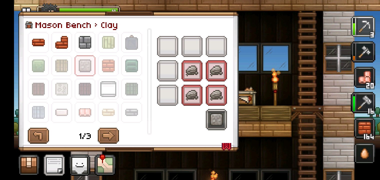 黏土在地下挖,有时候也会在水坑旁边,黏土块一挖下来就是一堆黏土,然后简单说一下黏土块在石匠台合成,瓦片在零件台合成,其他的全部在石匠那