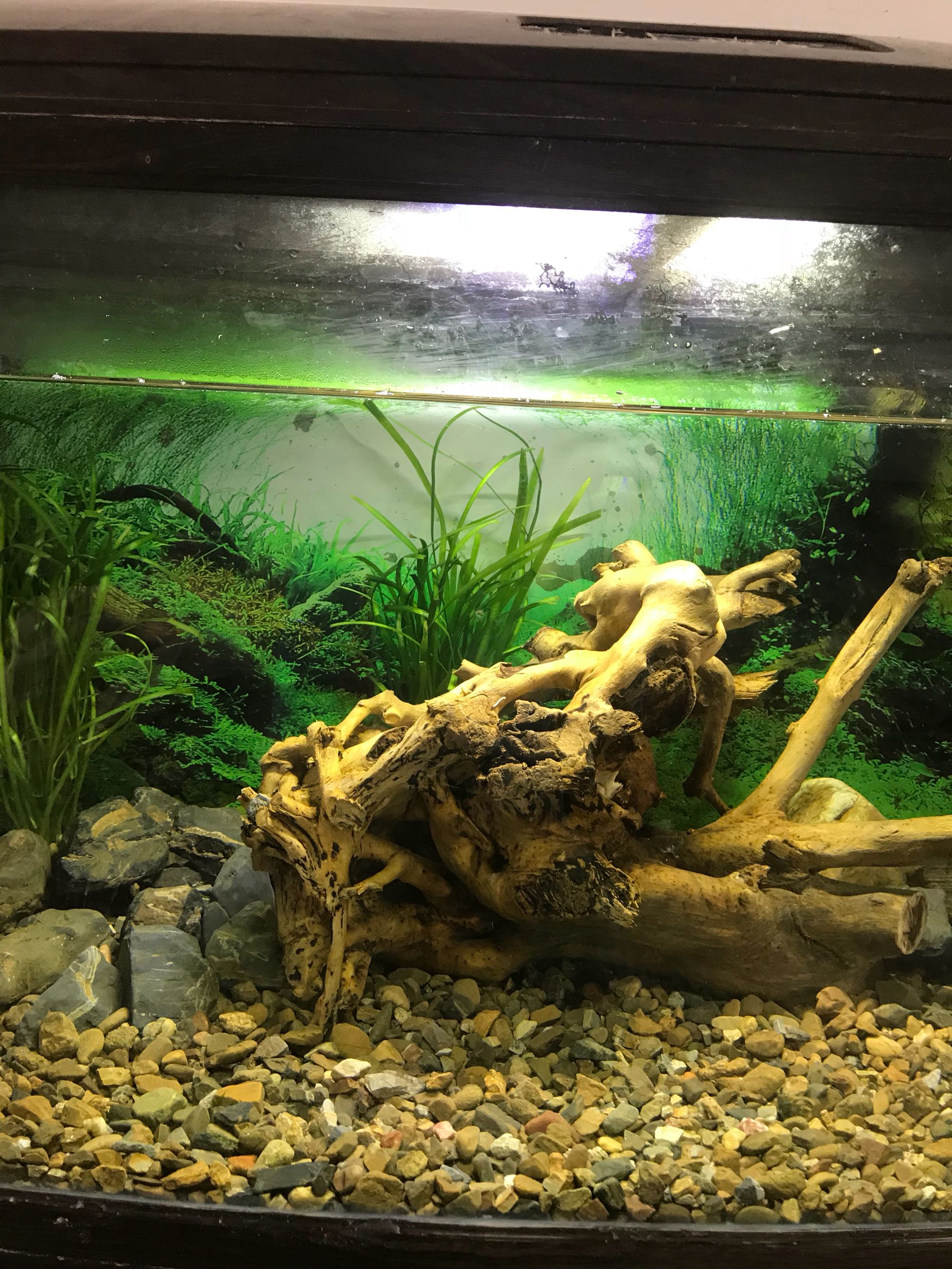 用高锰酸钾泡泡自己下缸了,缸是昨天开的,学大神们搞原生缸,看起来不伦不类的