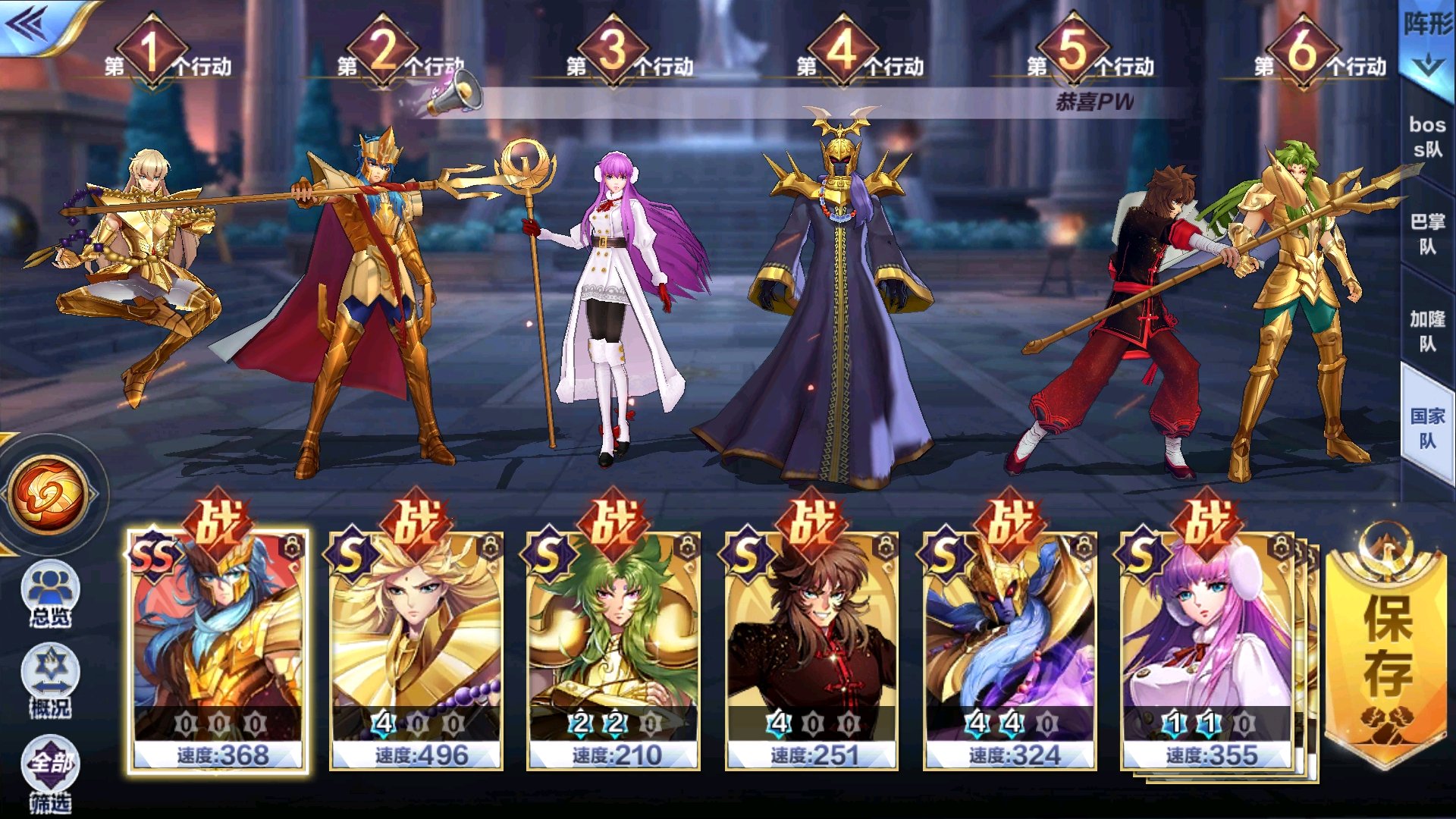 2 海神 神沙 纱织 童虎 史昂 瞬 (看情况教皇可以替代任何C)
