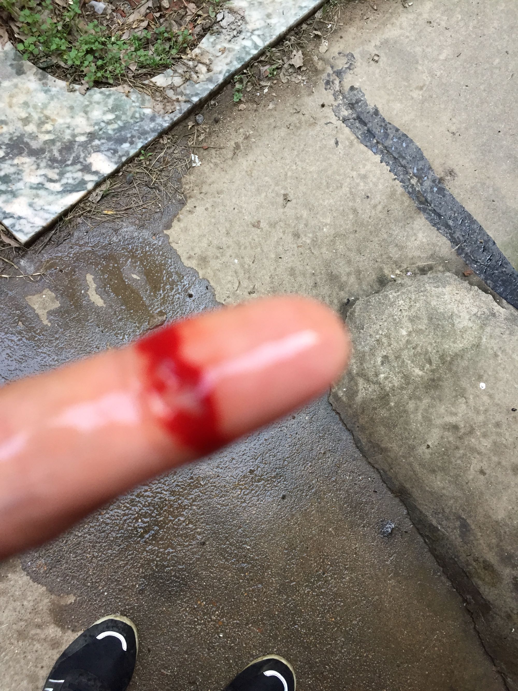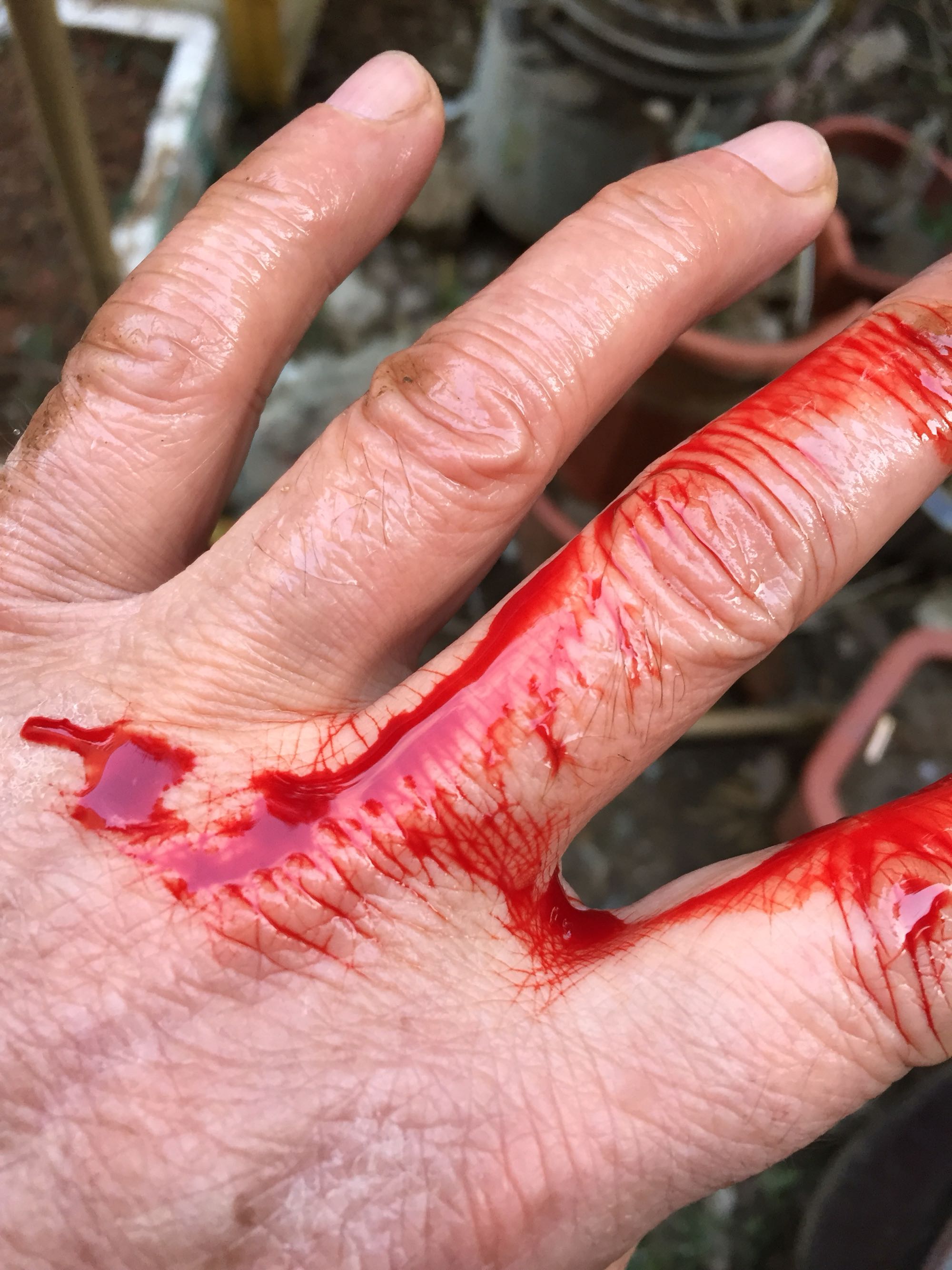 不小心是因为太过于专心,也可能是刀割桩不快,割肉快