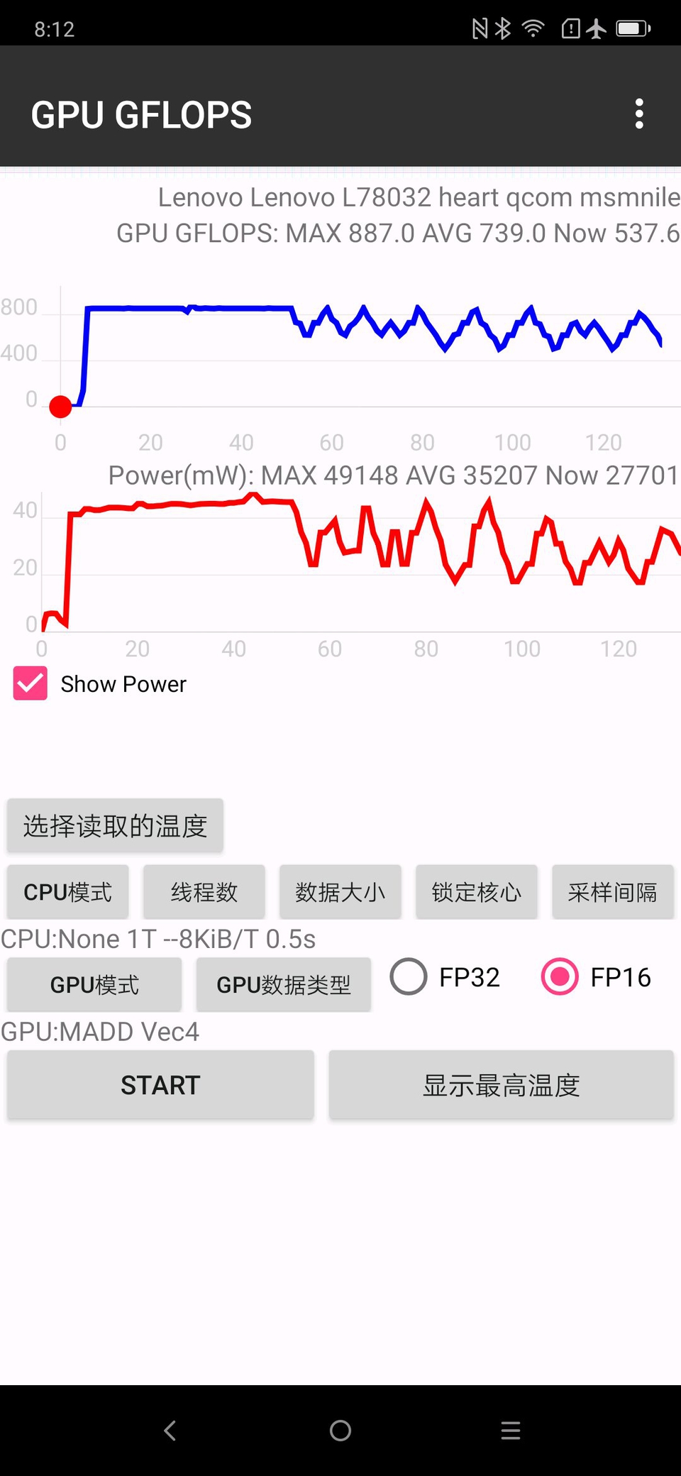 至于FP16 ALU的个数(Adreno的FP32和FP16是分开的,和大多数PC显卡类似),还未推算出符合官方PPT宣传50% ALU数值,因为现在A640算出FP16 ALU的数量是大于A630的1.5倍的,A630烤机Vec4 MAD FP16模式测出688.5GFlops,按照FP16的利用率93%~95%算大概是512 FP16 ALU,A640测出的FP16是887GFlops,之前的5系测了很多发现FP32和FP16 ALU数比值都是1:2,还不清楚6系的FP32:FP16的关系。