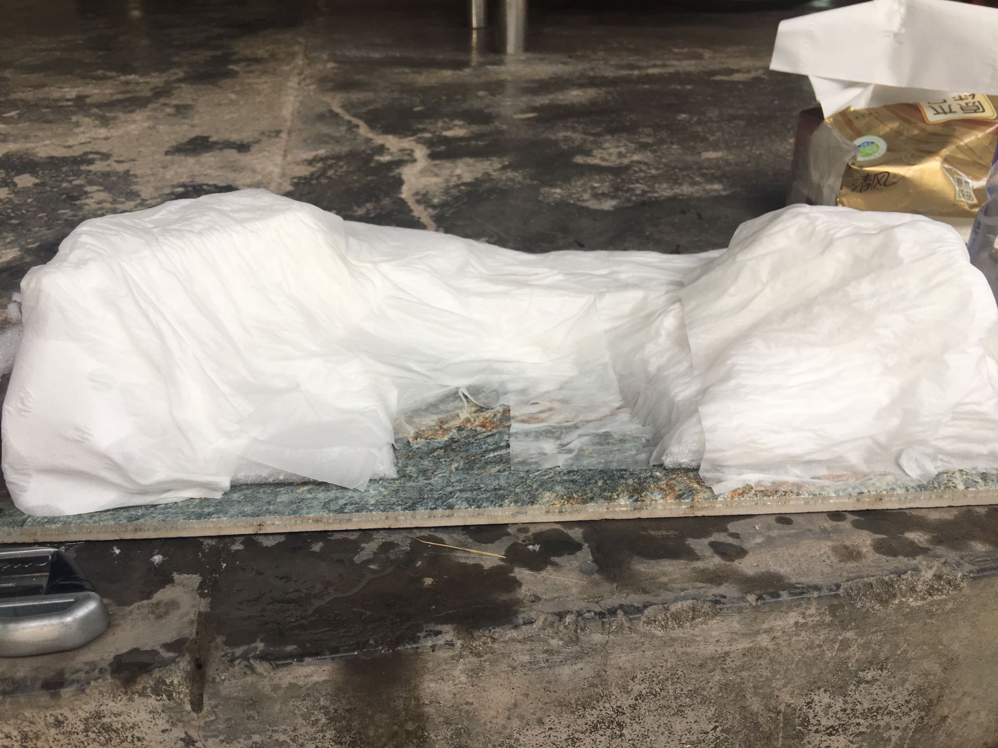 娘家这边是个小村,交通不是很方便,嘻嘻,逛了一圈娘家,找来了一块瓷片,一块泡沫,再找来些牙签,和一包抽纸,跟我预想的和预想的材料,差不多了