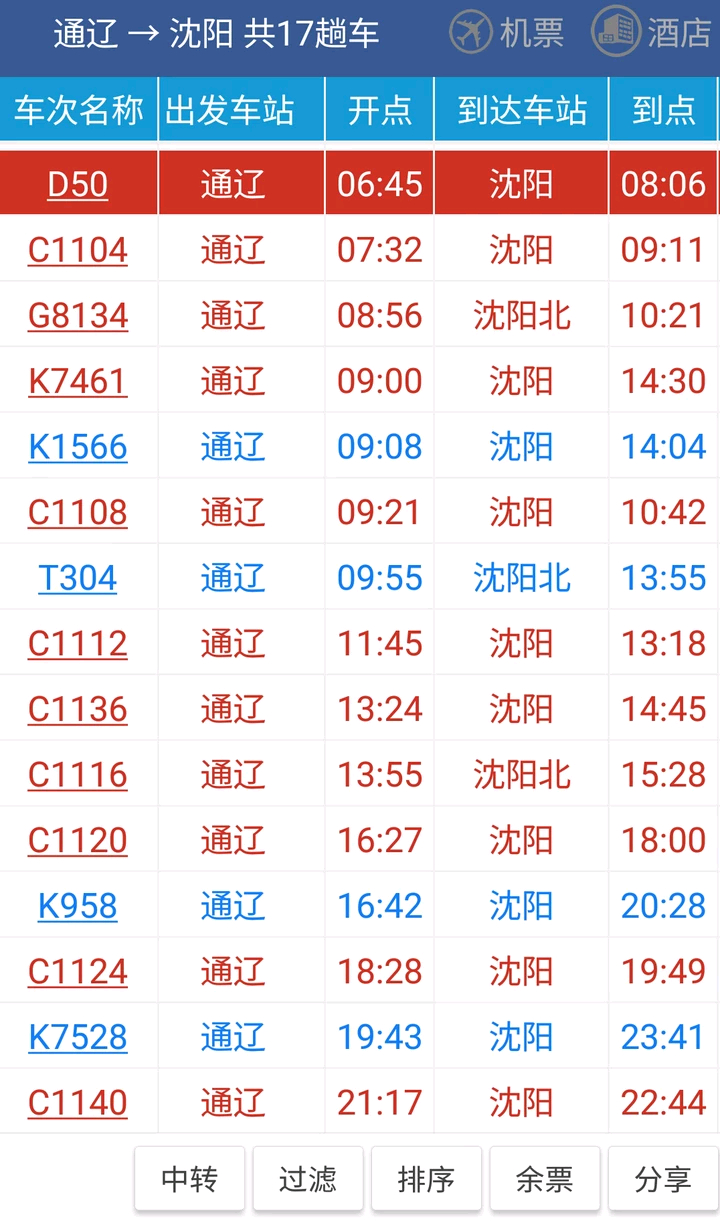 尤其通辽到沈阳可选择17趟车次有11趟始发高铁(动车)车次仅1小时21分即可高效率抵沈大(如下图)