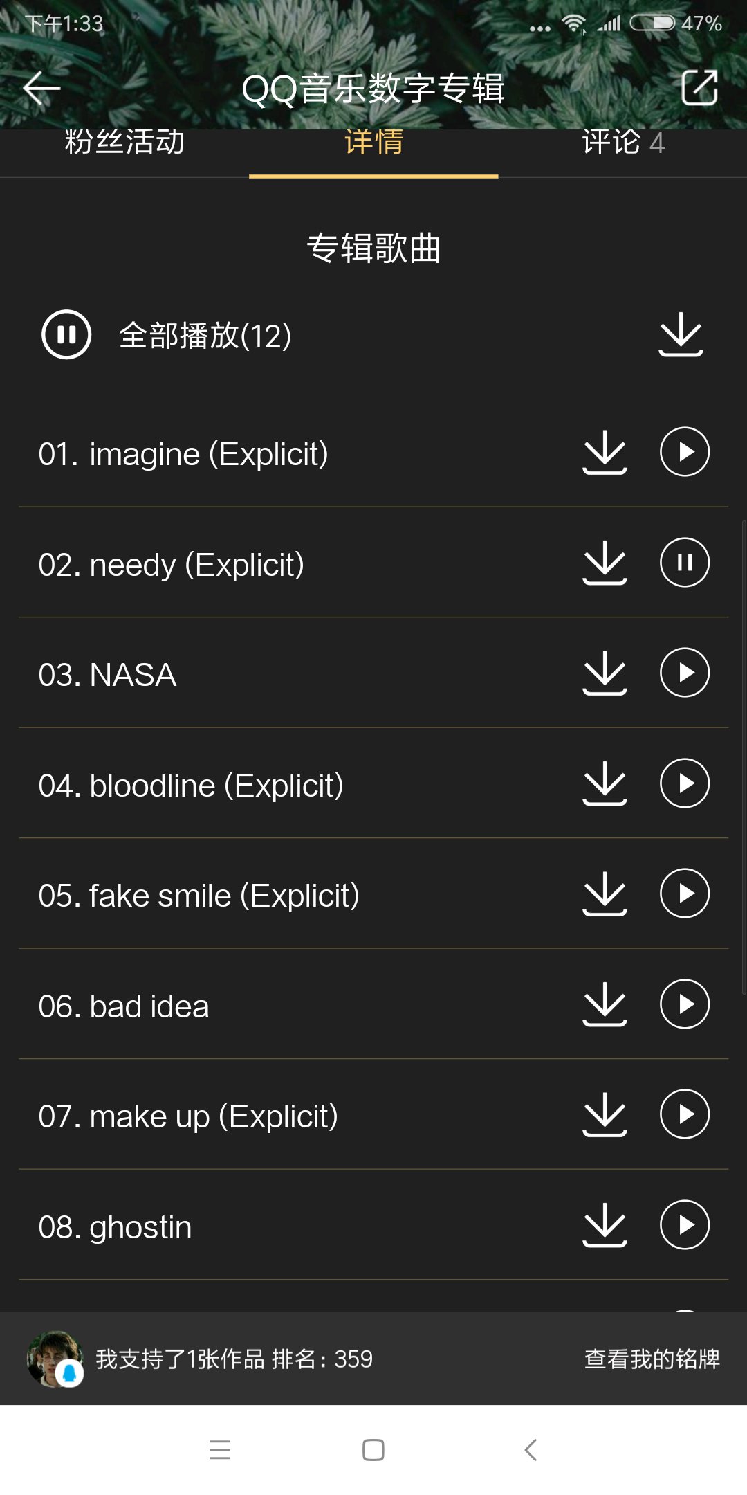 我等不下去直接网易云买了一张 买完q音就出了
