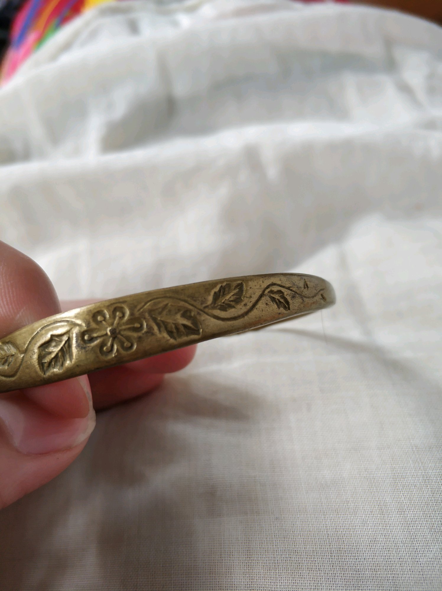 去年搞了只银镯子,俩只小天鹅接吻,经常戴上拿下来的缘故,从接吻的地方断掉了。你这个是老物件了吧?应该不是故意造旧,以前有政治老师说:乱世黄金,盛世古董。。。