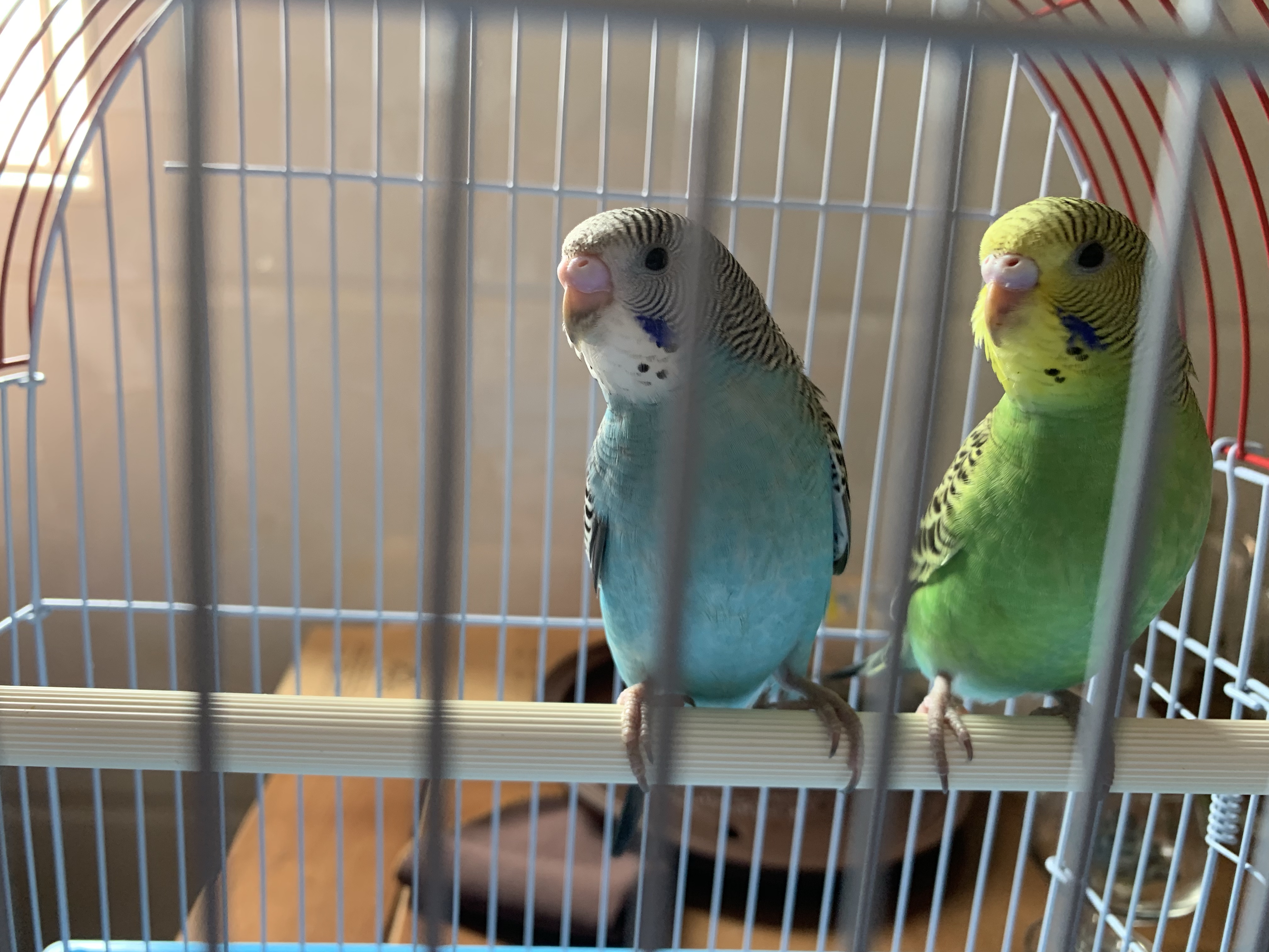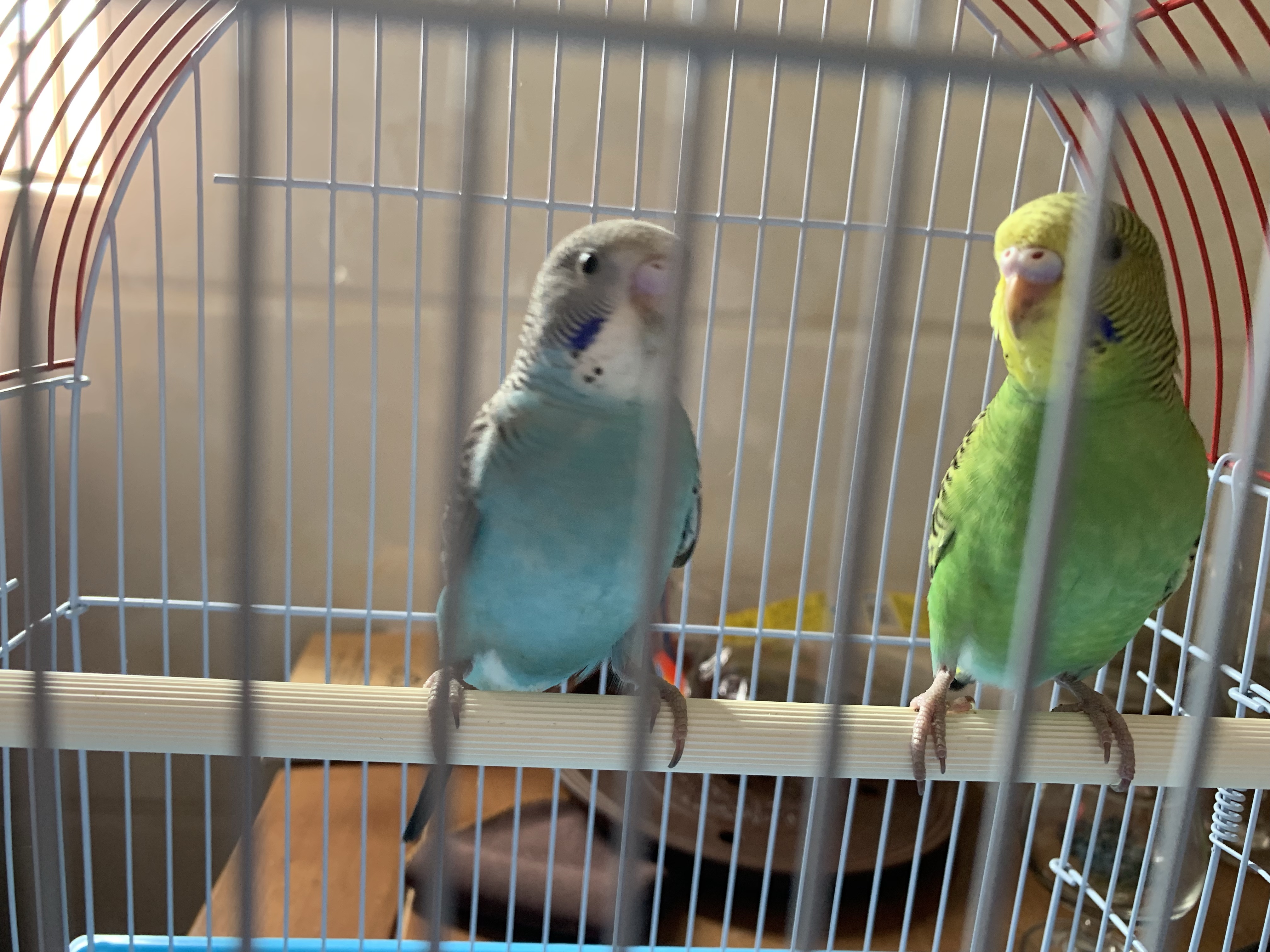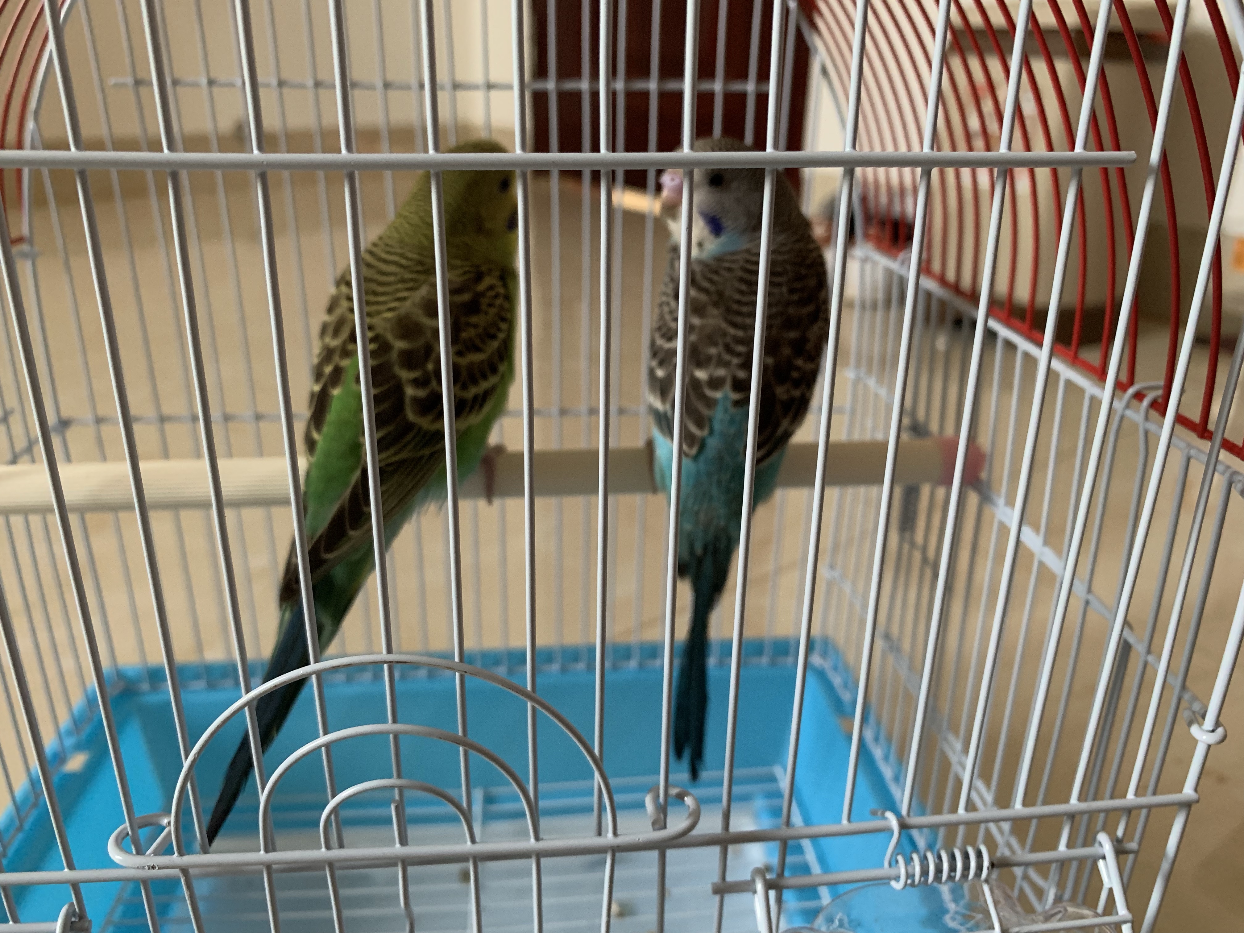 请问一下大家这是怎么回事,两个鹦鹉今天买的,我发现小母(蓝色