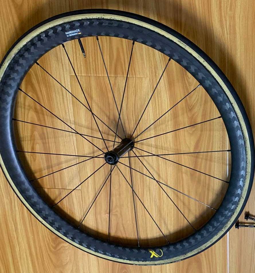 圈是方远farsports的圈,他们家的特殊碳纹,撕标的无标,但贴axlightness的贴纸,找朋友py价拿的,前后均40框高,没渠道拿货的话一对大概2400左右,但据我所知修补件也很少有单卖的。c3陶瓷版前35后40的框高还比这个重。