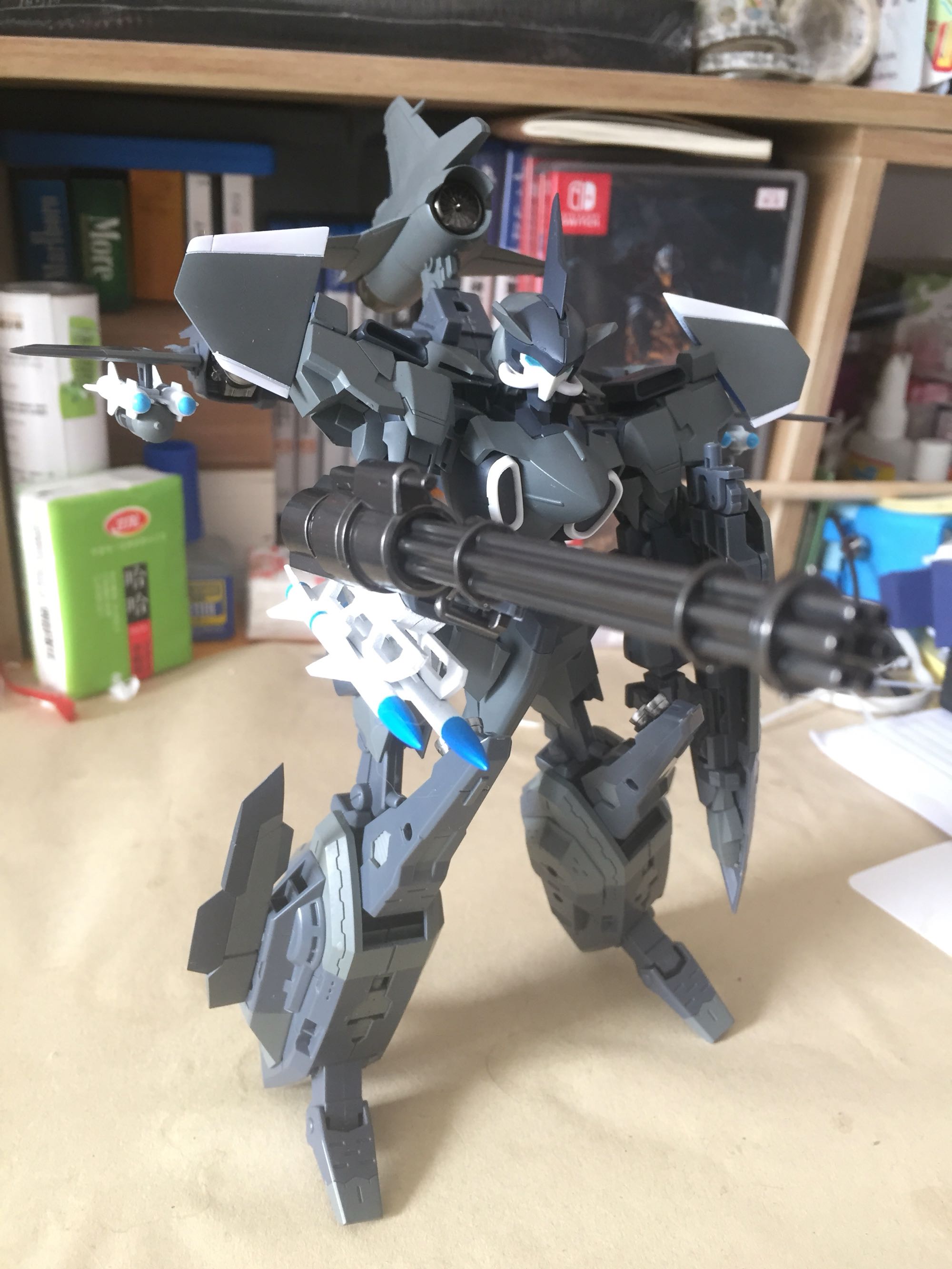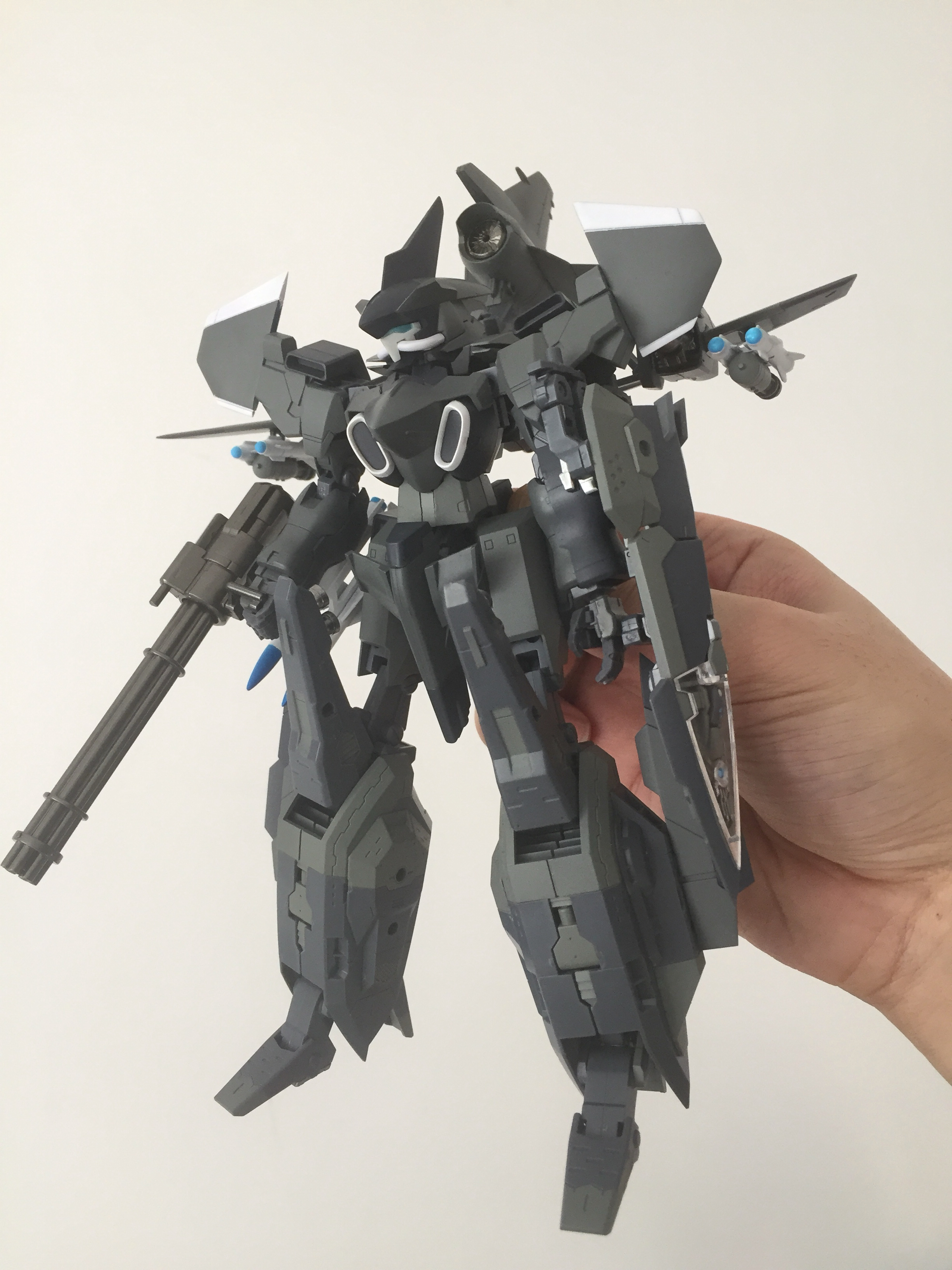 最后合体,FA都是松松垮垮的,也摆不出什么姿势,推进器变腿个人感觉并不算好看,脚的变形也比较麻烦,不过接地还是有的,看官图还以为只能上支架