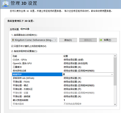 这个界面相信N卡用户都很熟悉,因为可以通过这个程序直接控制游戏的配置,而且是直接调用显卡对这个游戏,相当于少了一层转换,通常情况下效果会更好。所以我们先来讲讲怎么调整这个驱动来获得好的帧率优化。