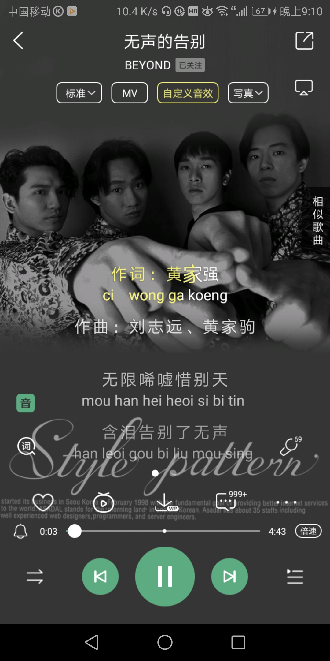 个人感觉beyond四子前期歌曲bass比重比后期大,比如说