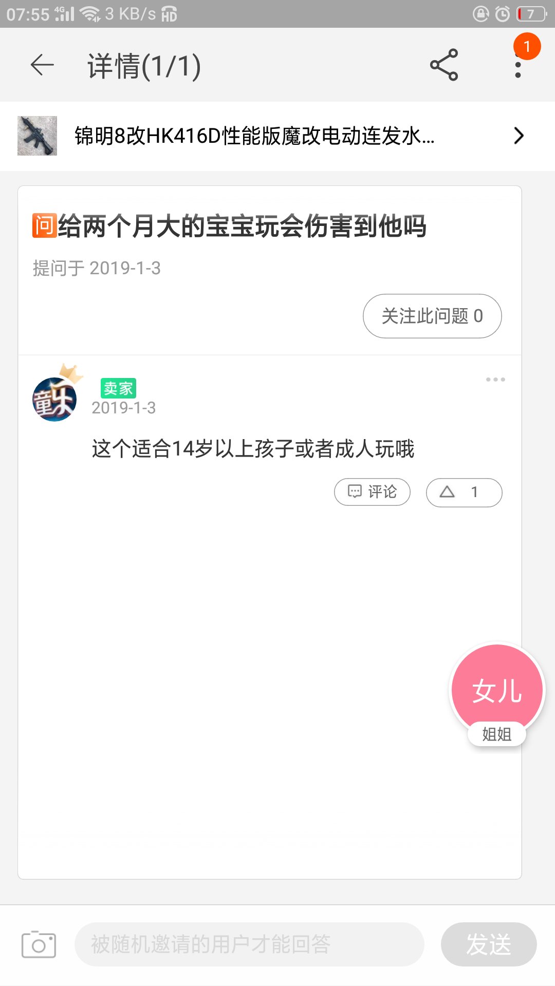 两个月大的宝宝还没木仓长吧,而且还拿不动呢,这人不是哗众取宠就是智商欠费