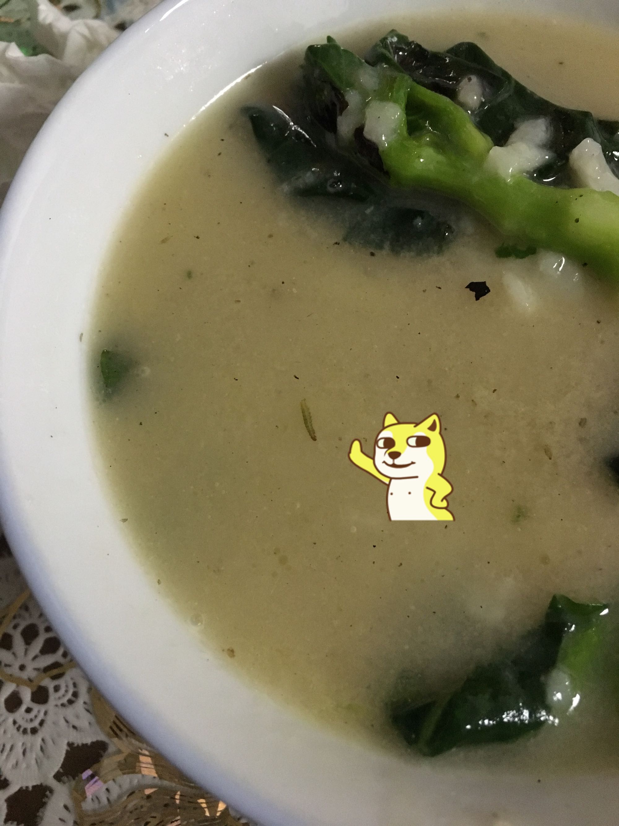 自己煮碗青菜年糕,吃了几口发现一条蛋白质