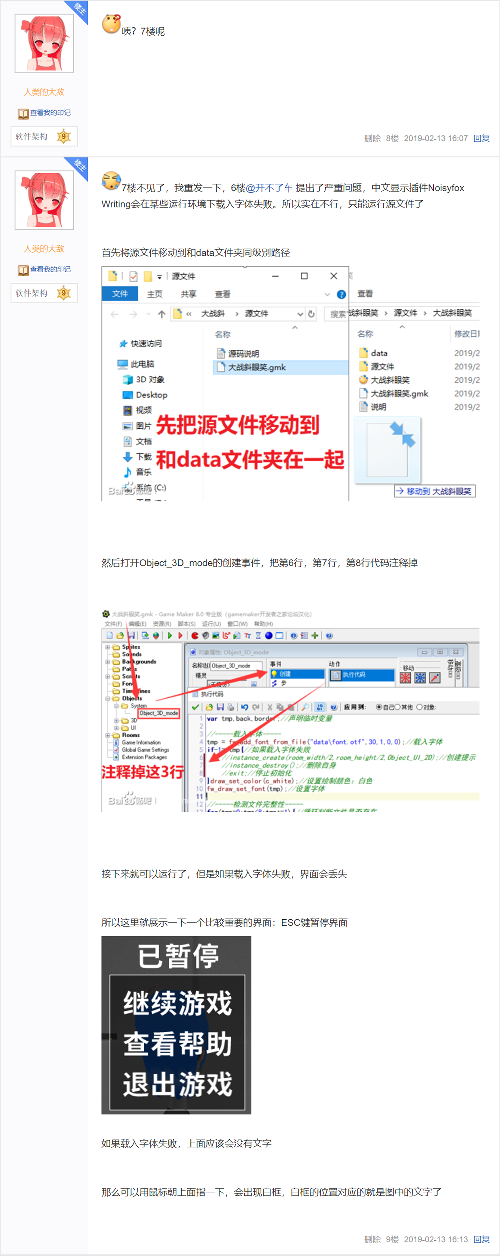 这个作品完全开源,只要下载,里面就有源代码。源代码里含有中文注释,如果要查看注释,需要用汉化版GM8打开。如果用英文版,注释会变成乱码