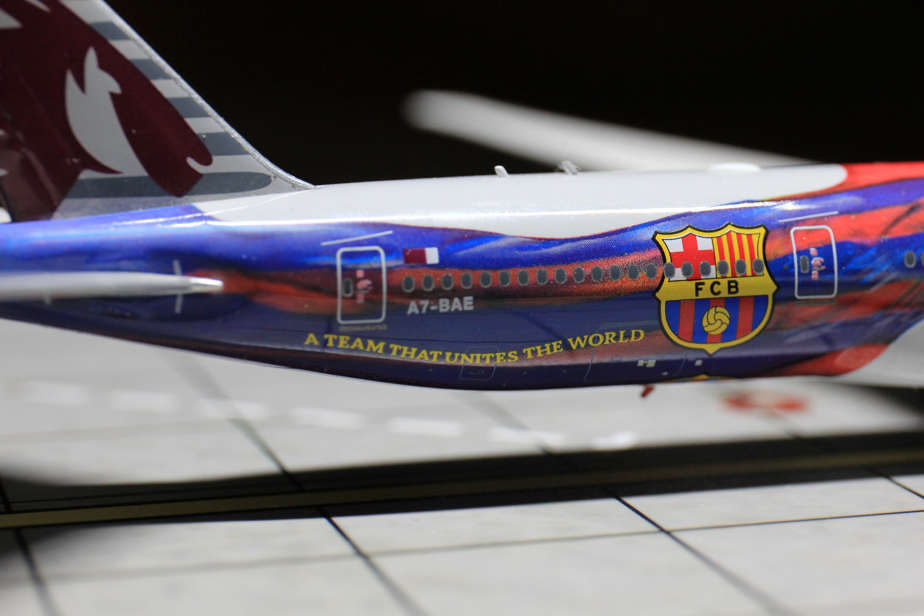 最近有幸收到了一架巴萨涂装的77W,感觉还挺好看,今晚拿出来小拍一下。