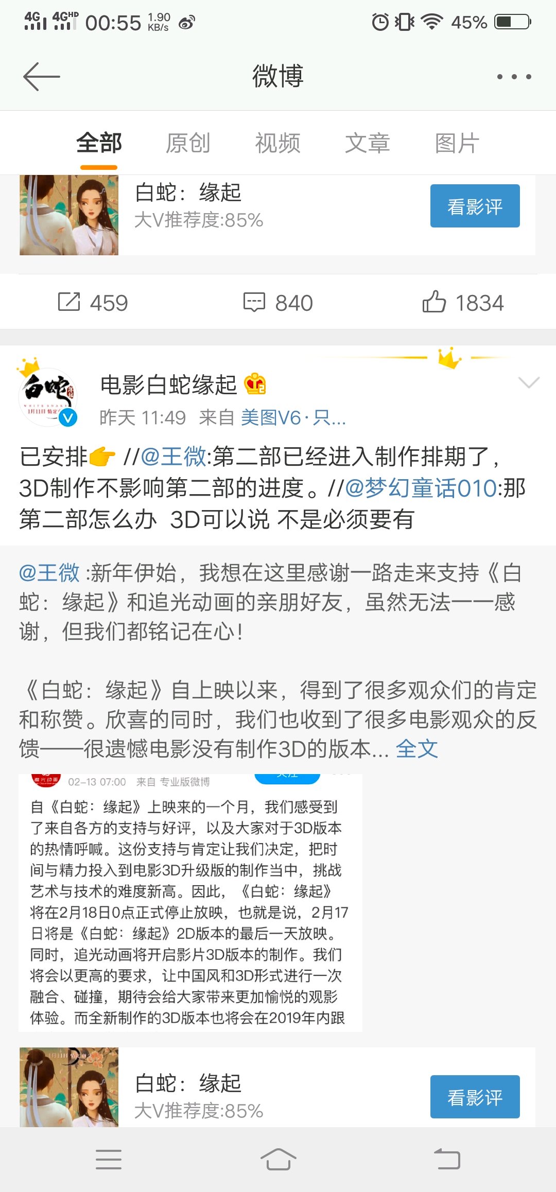 小白2月18日0点下映,开始制作3D版本,不是2D转3D是回炉重造版,同时第二部正在制作中,以个人来说非常想看3D版,但主创们为了积累足够的经验真心是孤注一掷版,追光老板真硬核,