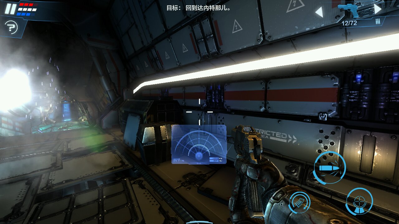 画面好没用,这游戏场景太单一,你从上下左右看全是深蓝色的铁皮,玩多了就觉得恶心