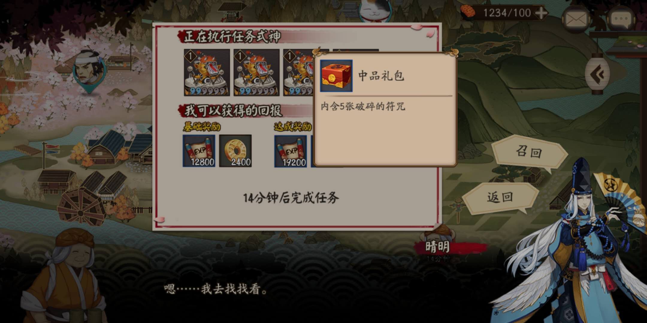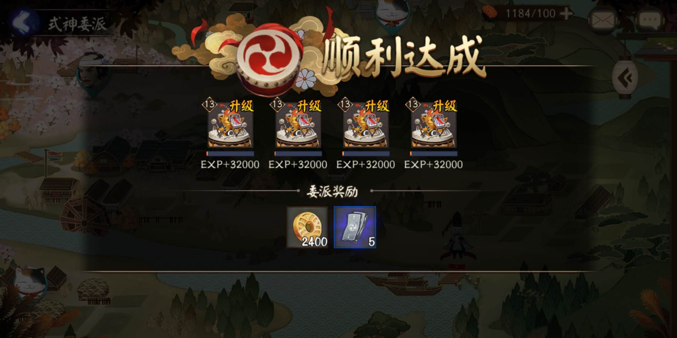 式神委托要经常去看看!当你等级到达35级后(好像是这个级数吧),你的委托任务里将有几率刷出【缺失的花札】的任务,这个任务经验丰厚,而且奖励5张N卡,炒鸡划算。关键是!这个任务只需要委派4个1级天邪鬼系列的式神去,成功率就能达到90%以上了。完成任务后,这4个天邪鬼能从1级升到13级。所以仓库里的天邪鬼一家式神不要优先当做2星狗粮喂了,除非你真的没有其他能为的2星狗粮了。它们可以带到20级转为3星狗粮喂掉。