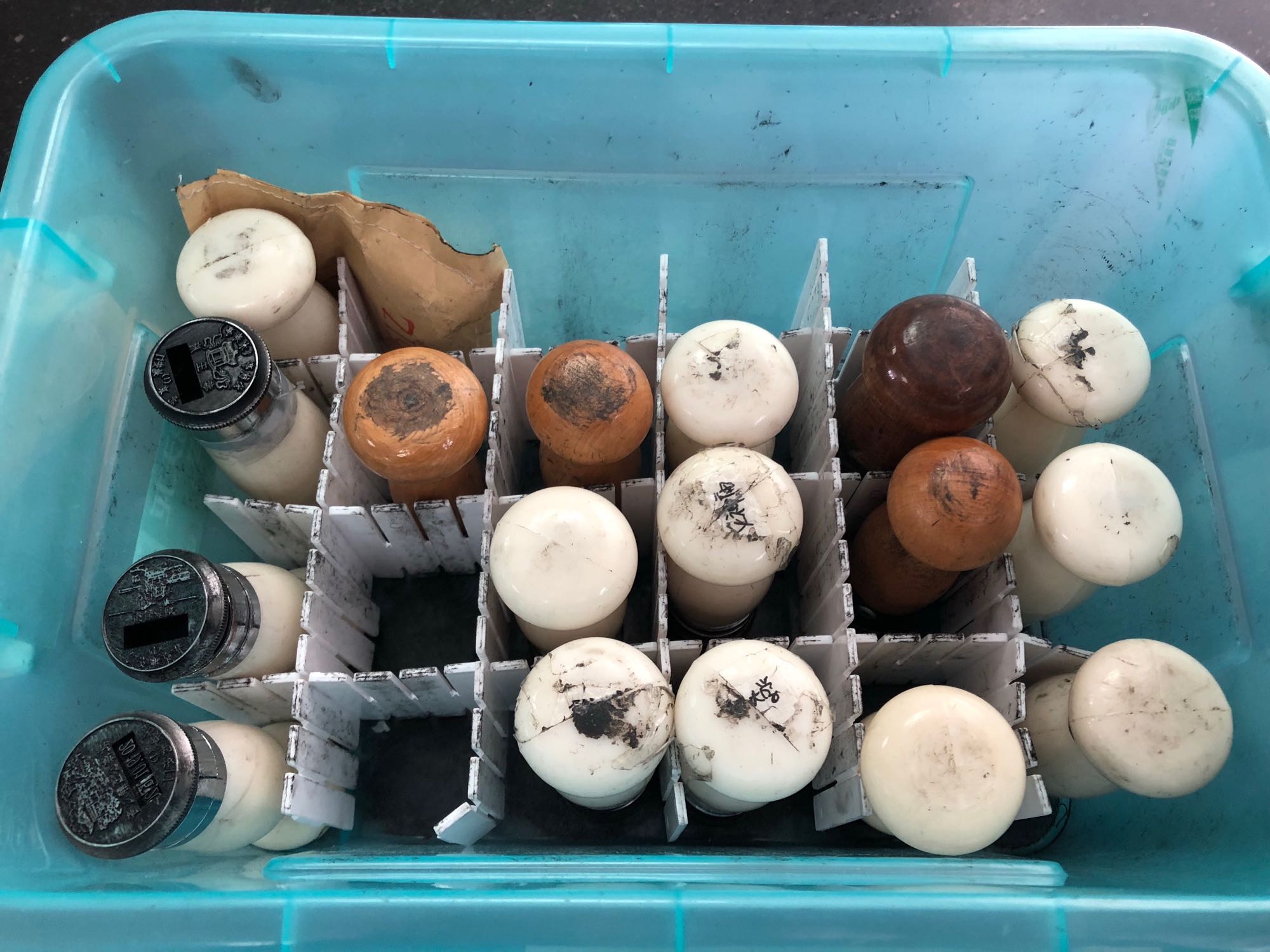 进邮局,上二楼,押身份证盖戳,一盒17枚戳,含1枚中国福临戳。现在有4枚戳头取不下来,无法换字钉。