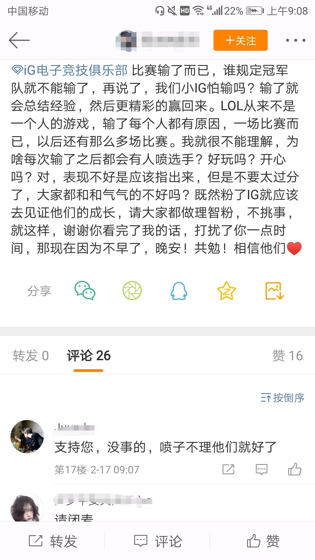 和你讲吧,现在ig的超话全是宝蓝粉丝一家独大。ts jkl粉丝没话语权懂吧?黑bl的秒删,阿水的就一直放着,甚至还有某些所谓的队粉带节奏