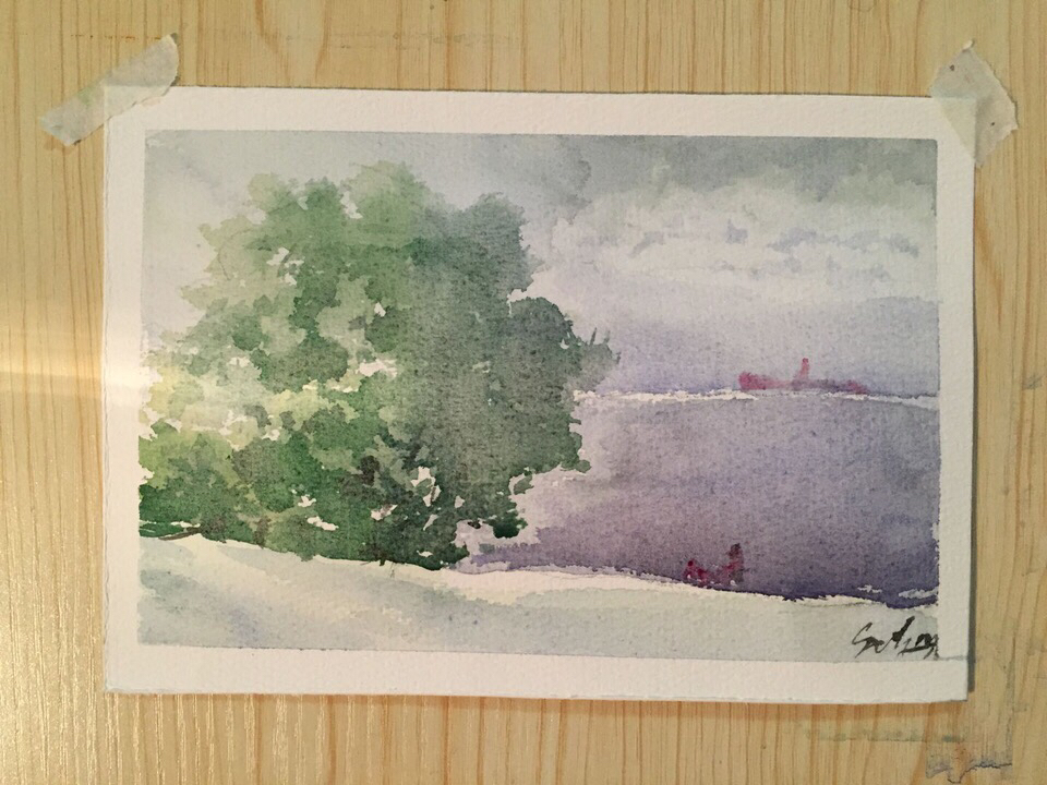 今日份,左边树木毁所有。写生某大神照片。