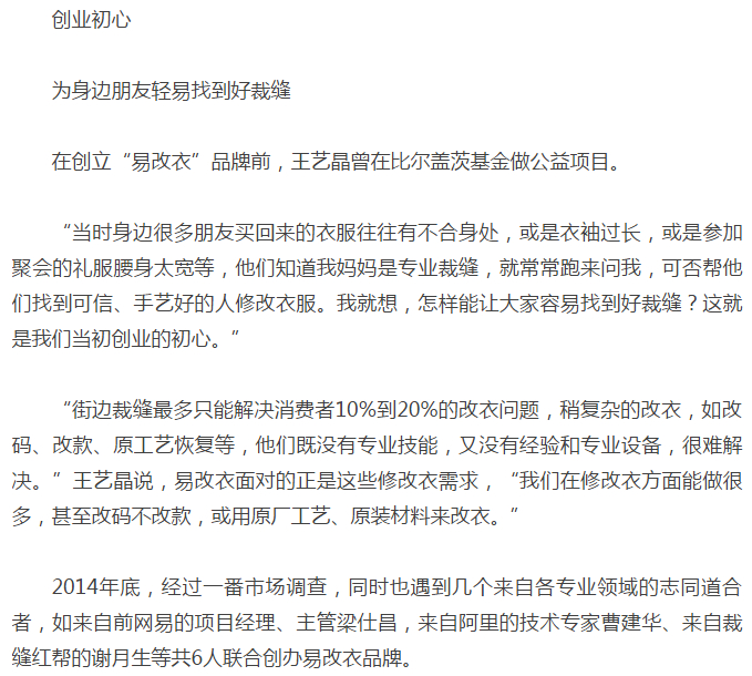 【创业思维】新平台易改衣的商业模式