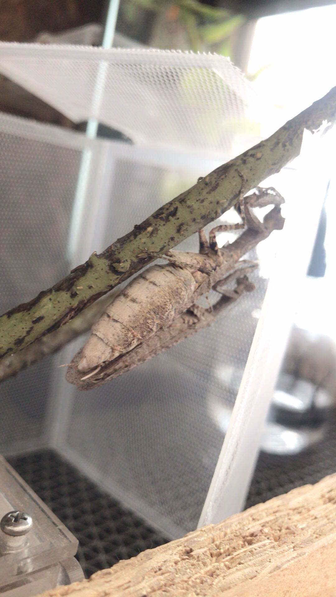 中印枝螳 这个状态快一个小时了 雄虫还是没有进一步动作 这是什么情况啊 要多久才会开始交配啊