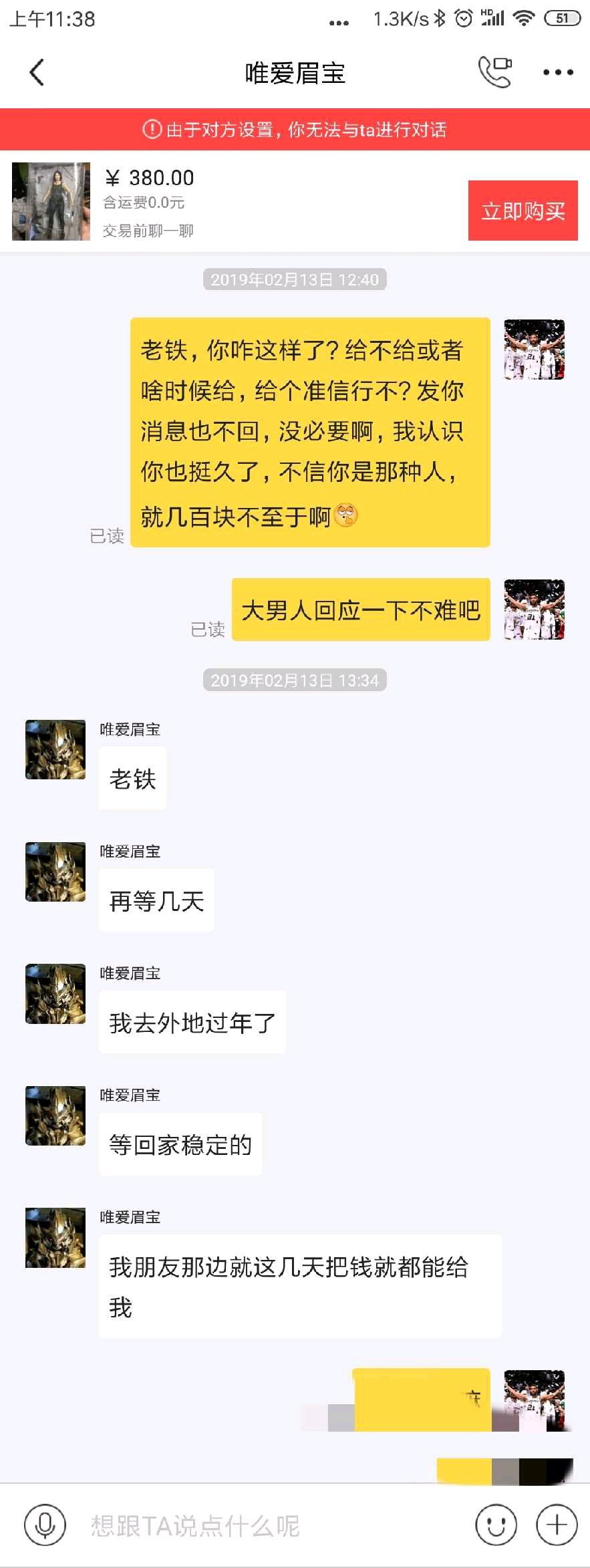 拖欠朋友的重涂费用和海外定制人偶费用。拖欠不给并且拉黑别人。详细资料放在下面了。