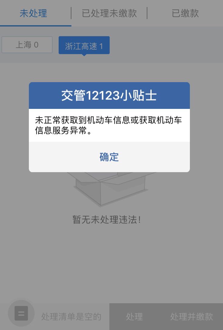 未正常获取到机动车信息或获取机动车信息服务异常