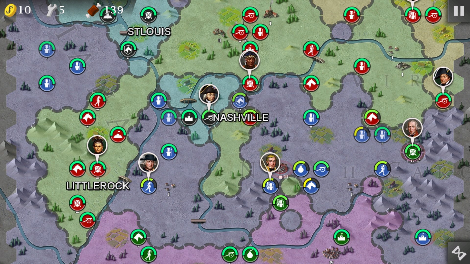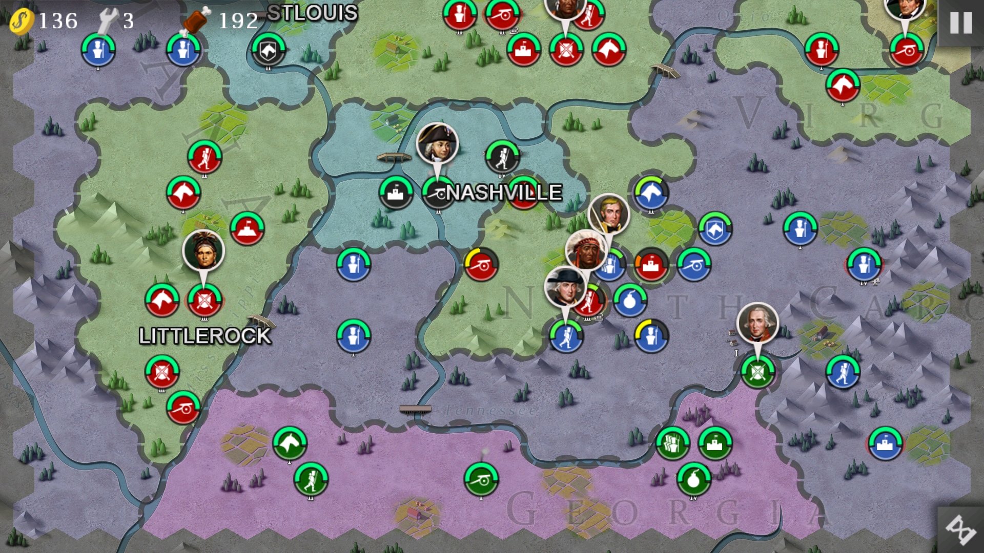 第二回合除了右面一级城再造三支民兵。占领一个二级城,下面两将领输出。