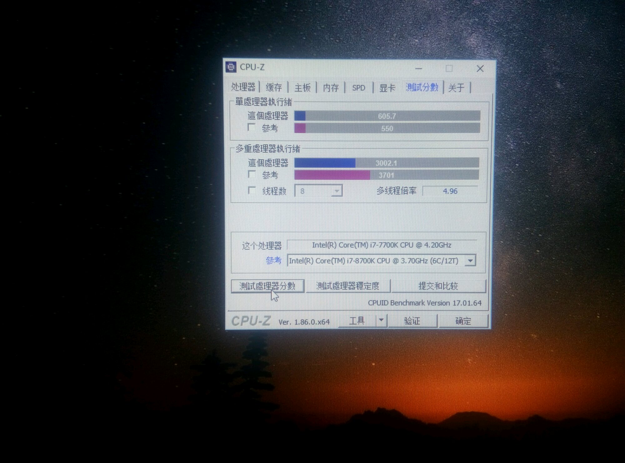 不带K的8700单核跑分超过500很好了,我的8700多线程超过带K的达到3千8百多分