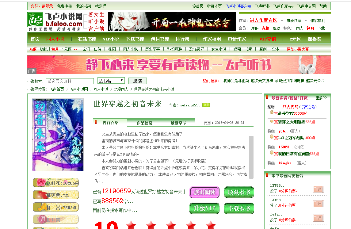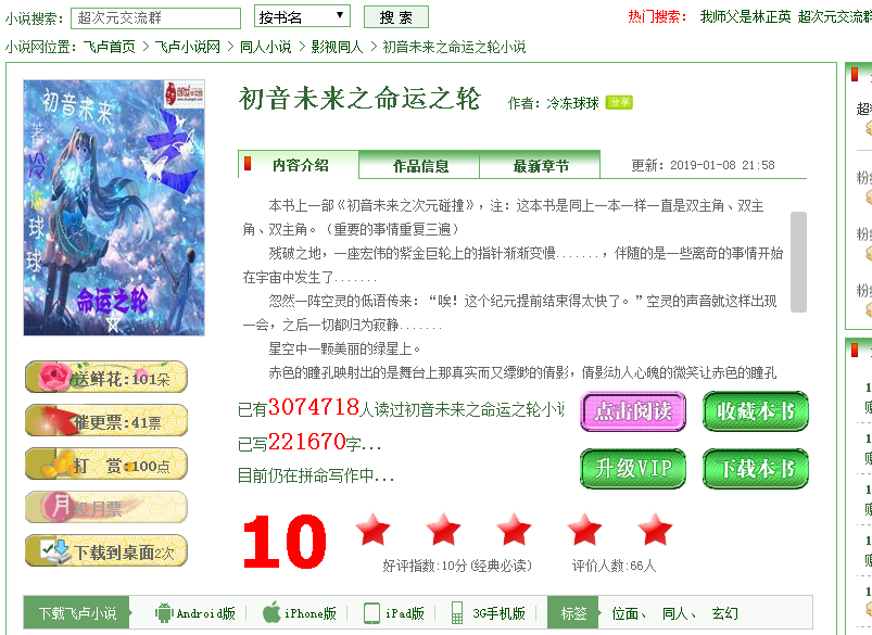 ...初音未来之次元碰撞和世界穿越之初音未来是相同的内容,大概作者注册了两个号