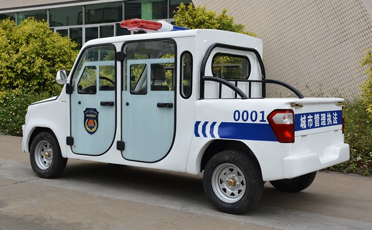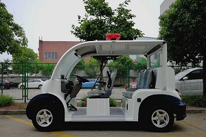 4座电动巡逻车优点颇多,环保节能(每百公里费用比汽油车巡逻要便宜2/3以上),噪音小、机动灵巧、提速快、续驶里程远、承载能力强、视野更开阔、便于巡视等特点,集巡逻灯、喊话器等巡逻务系统及工具箱于一体,机电、灵巧地为街头执行巡逻任务提供便利