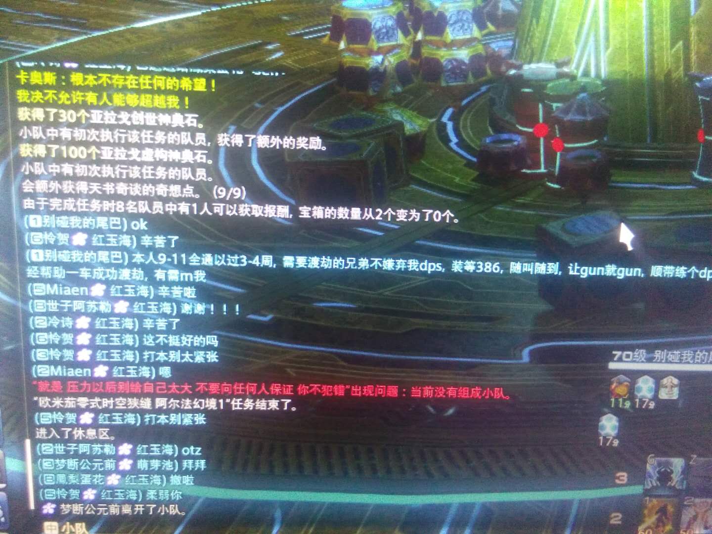哦对 ,今天早上我进的第二个队伍,进去直接把我踢了,名字我没截图 我也不跟他一般见识,叫个啥桃花什么糕啥的,不好意思没记住你的id也懒得截图,说明我爱你不深,然后我进的第三个招募人家队友给力,带我见了个百分之2 的12s本体,也不嫌弃俺最恶龙骑dps,最后打了半个多cd,我犯错死掉了,我就退队了,零失误龙骑,犯错就gun,就是这么任性,爱服不服