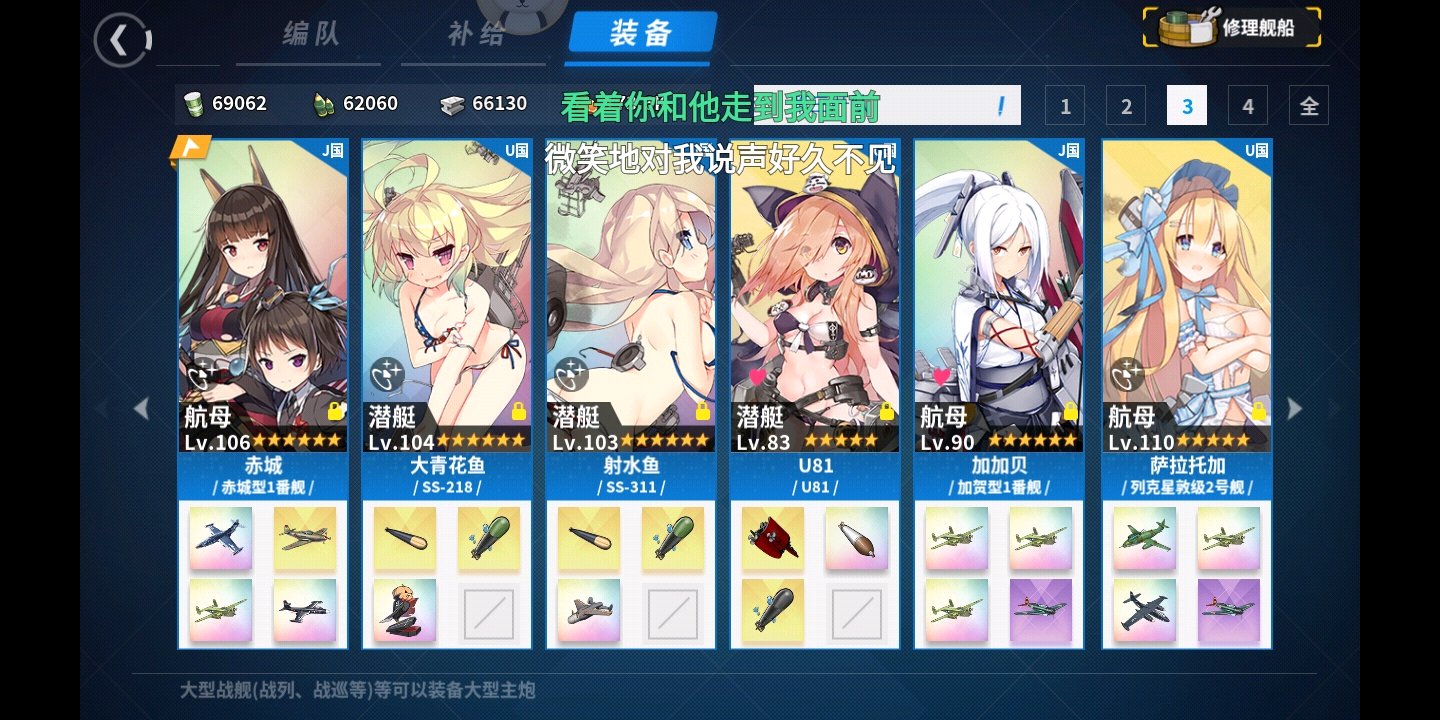 建议3CV3SS,可以赤城旗舰,舰战带+15,+14,+13 3个,后面的航母3彗星+80番或者g55s/天山不挠