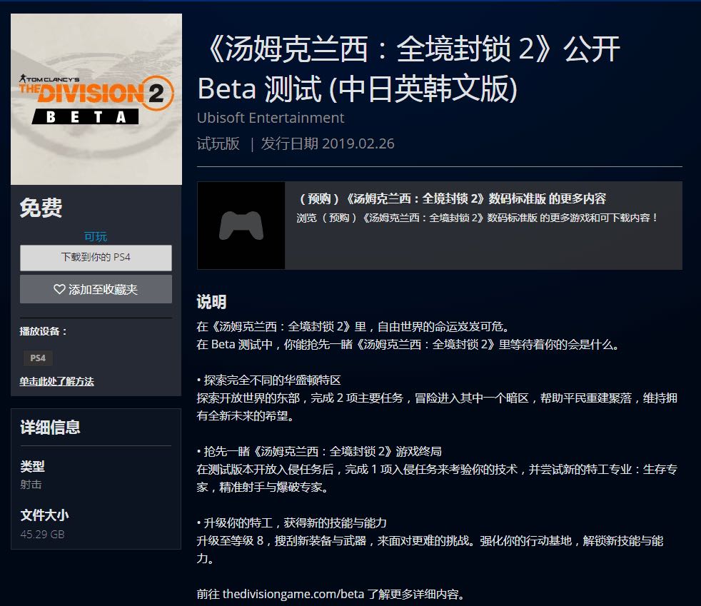 Ps4公开测试已经可以预载,有需要的可以去下了