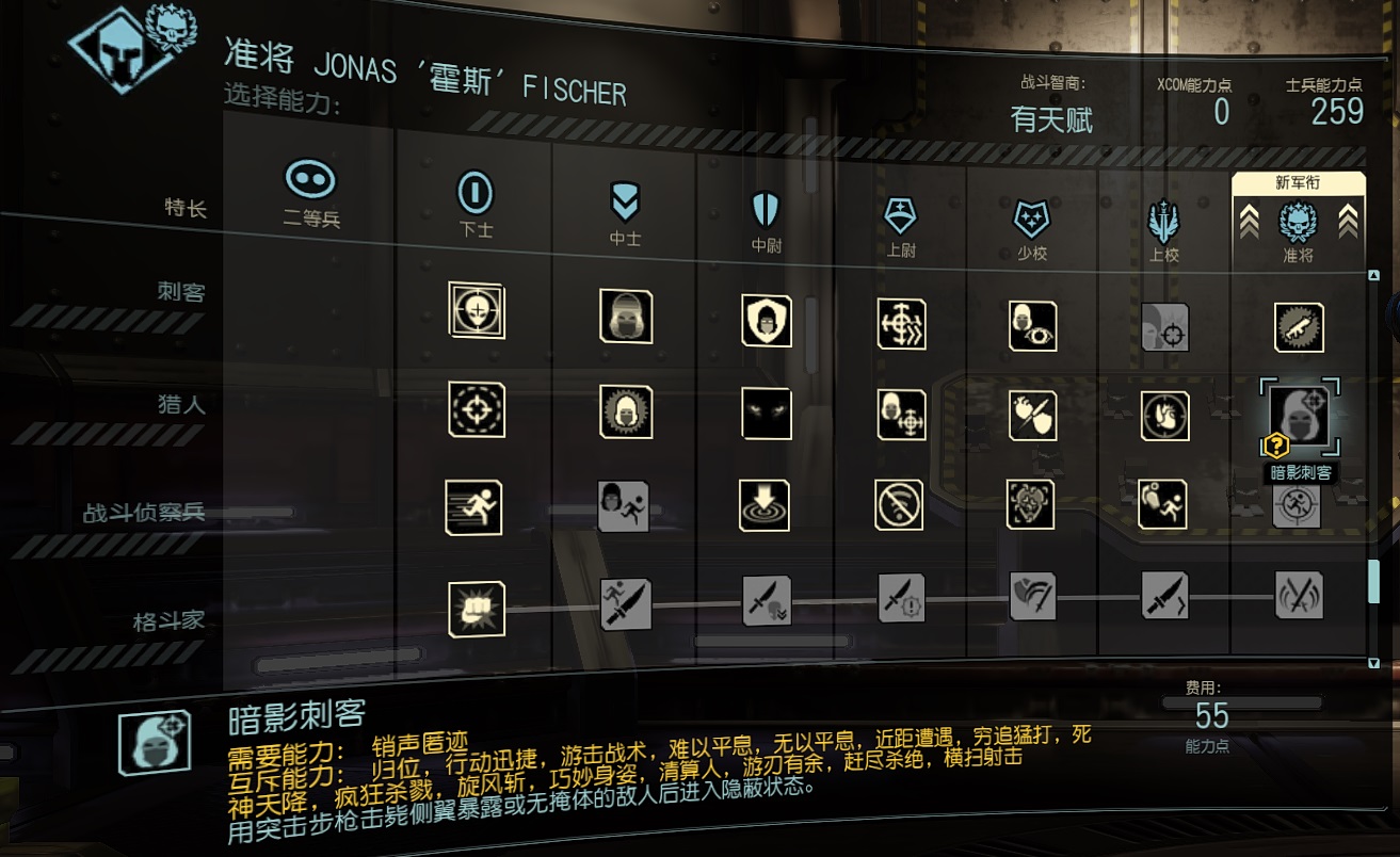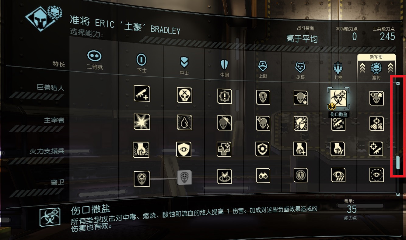 可以在技能面板右边拖动滚动条来选择技能开新档前必须删除 C盘 我的文档\My Games\XCOM2 War of the Chosen\XComGame\Config 下的所有文件。