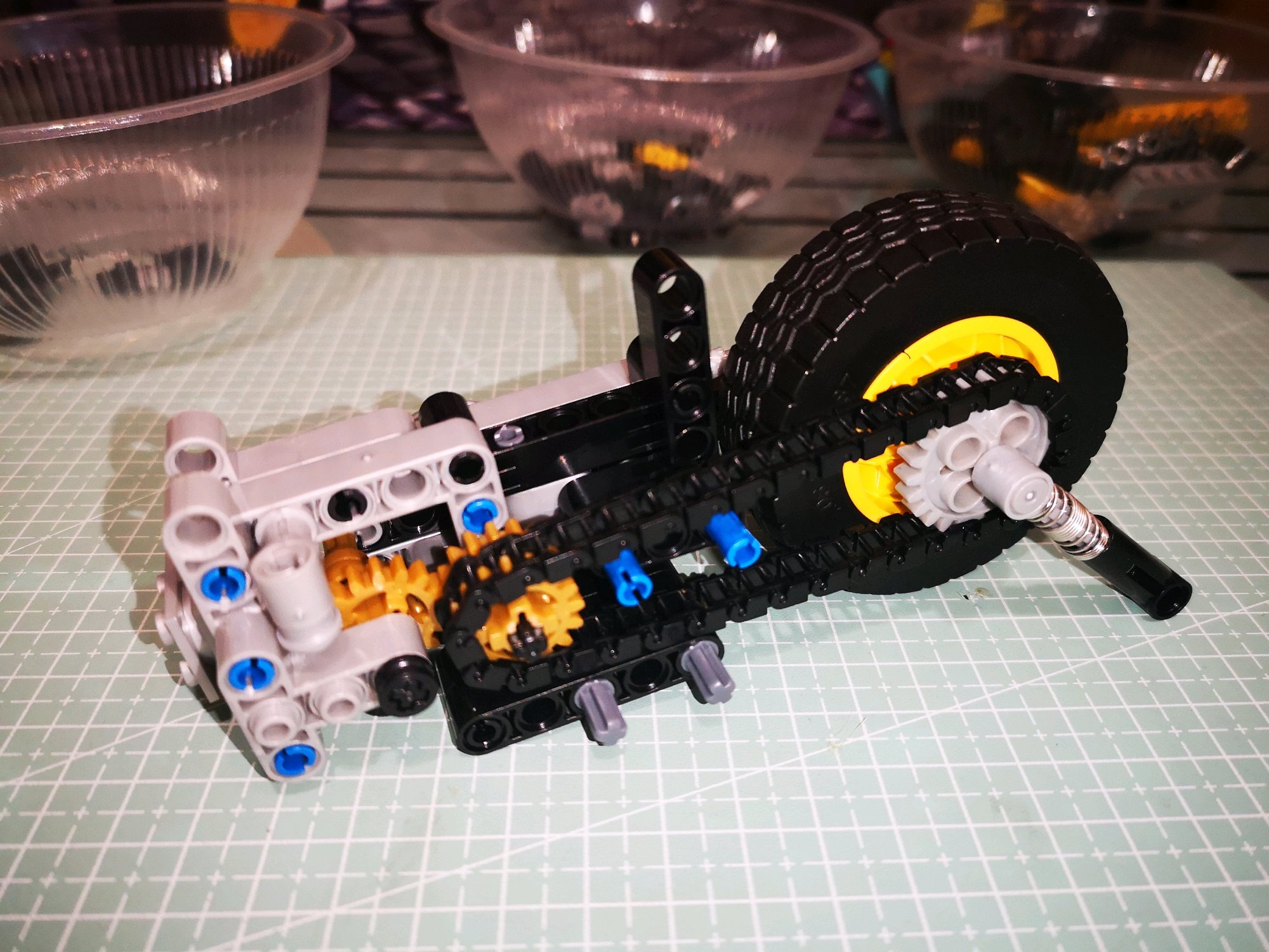 拼搭过程还是比较愉快的,没有遇到零件公差问题,链条、齿轮联动结构运转顺畅。